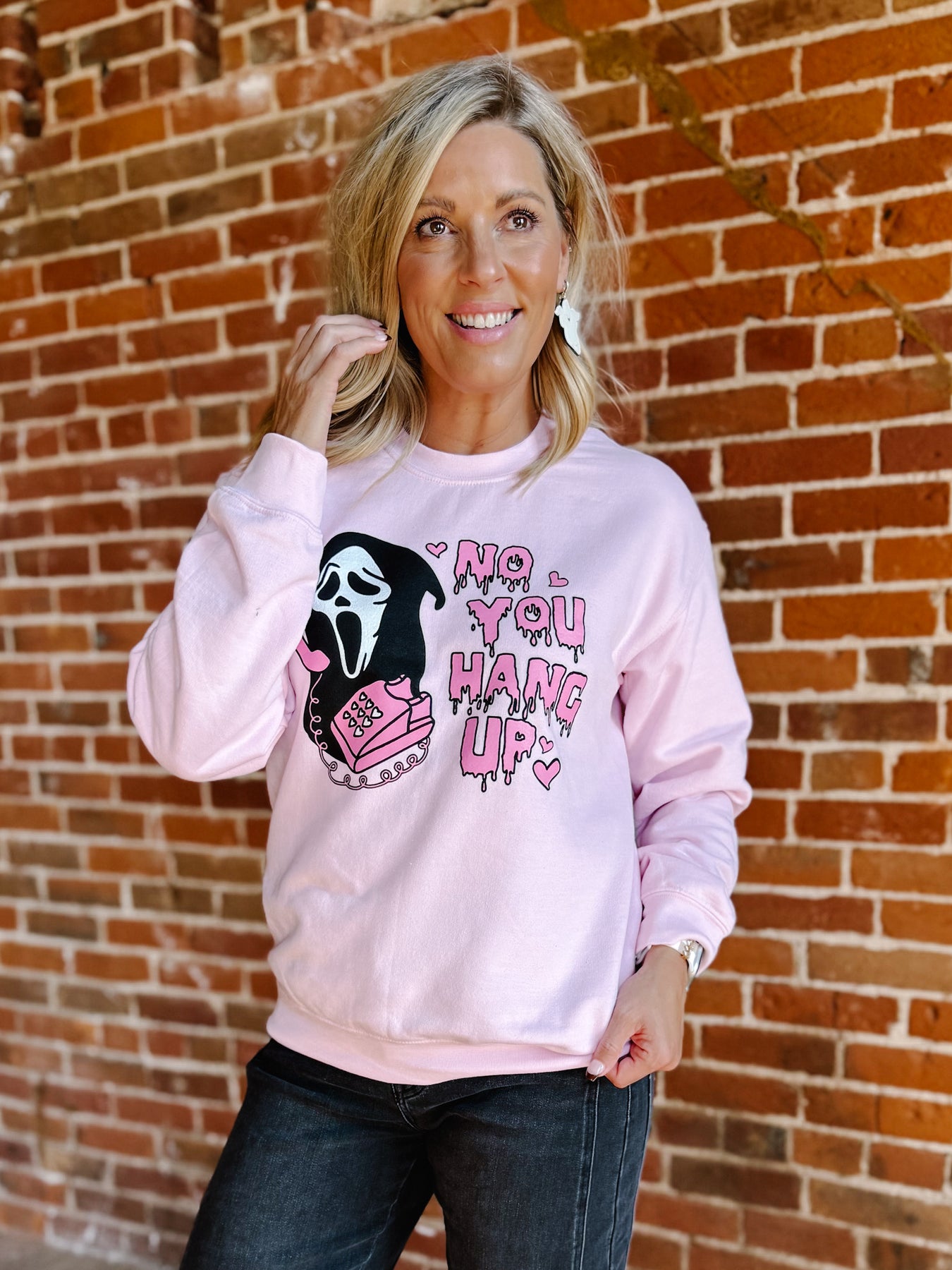 No You Hang Up Graphic Sweatshirt, Light Pink