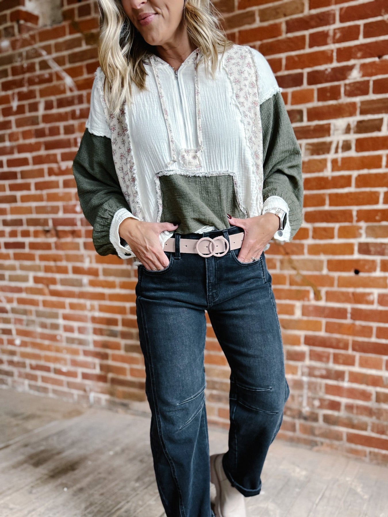 The Round and Round Monochromatic Belt adds an elevated finishing touch to any outfit. Designed in soft faux leather with a matching double ring buckle, it’s the perfect neutral accessory that effortlessly complements denim, dresses, or trousers.