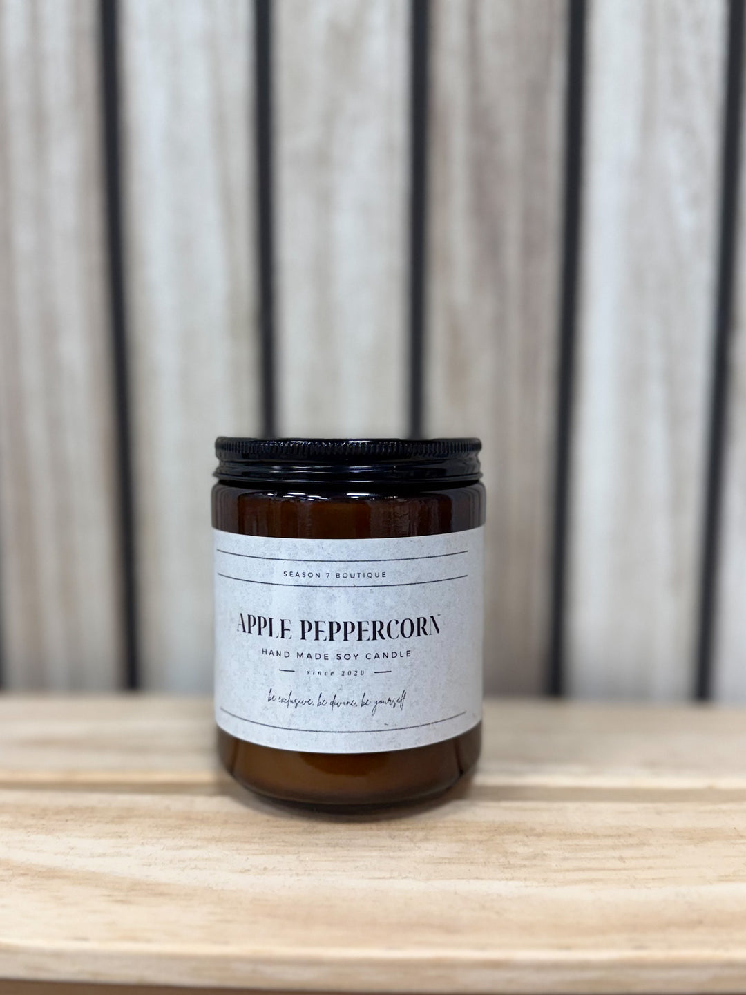 8oz Jar Hand Poured Soy Wax Candle, Apple Peppercorn