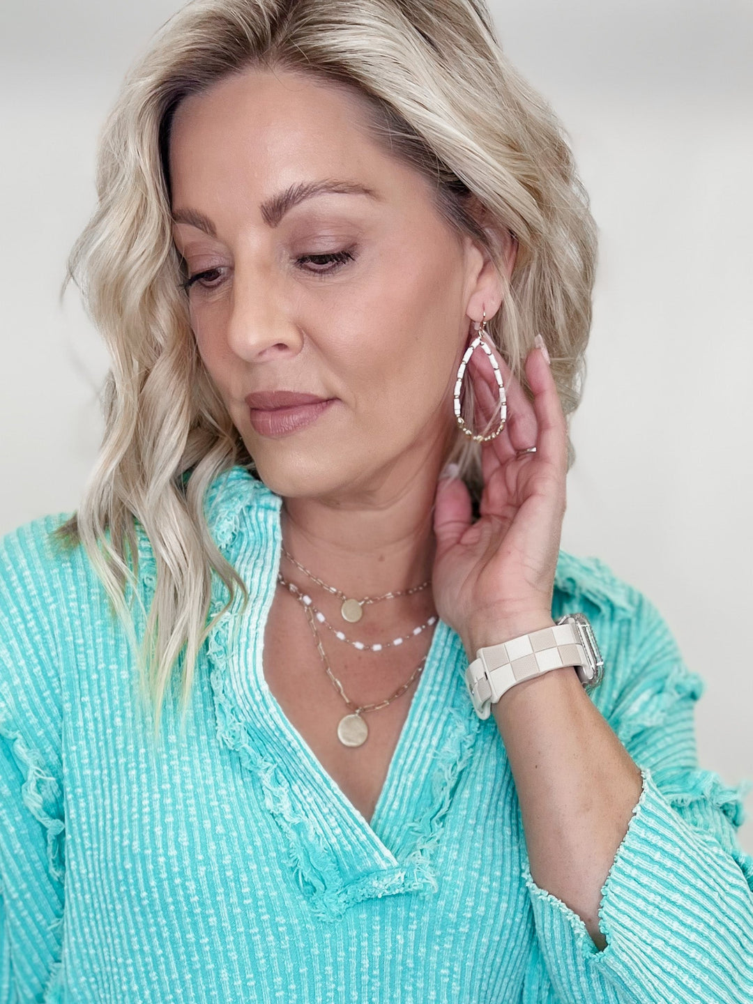 Teardrop Hoop with Gold and White Seed Beed Accent, Gold