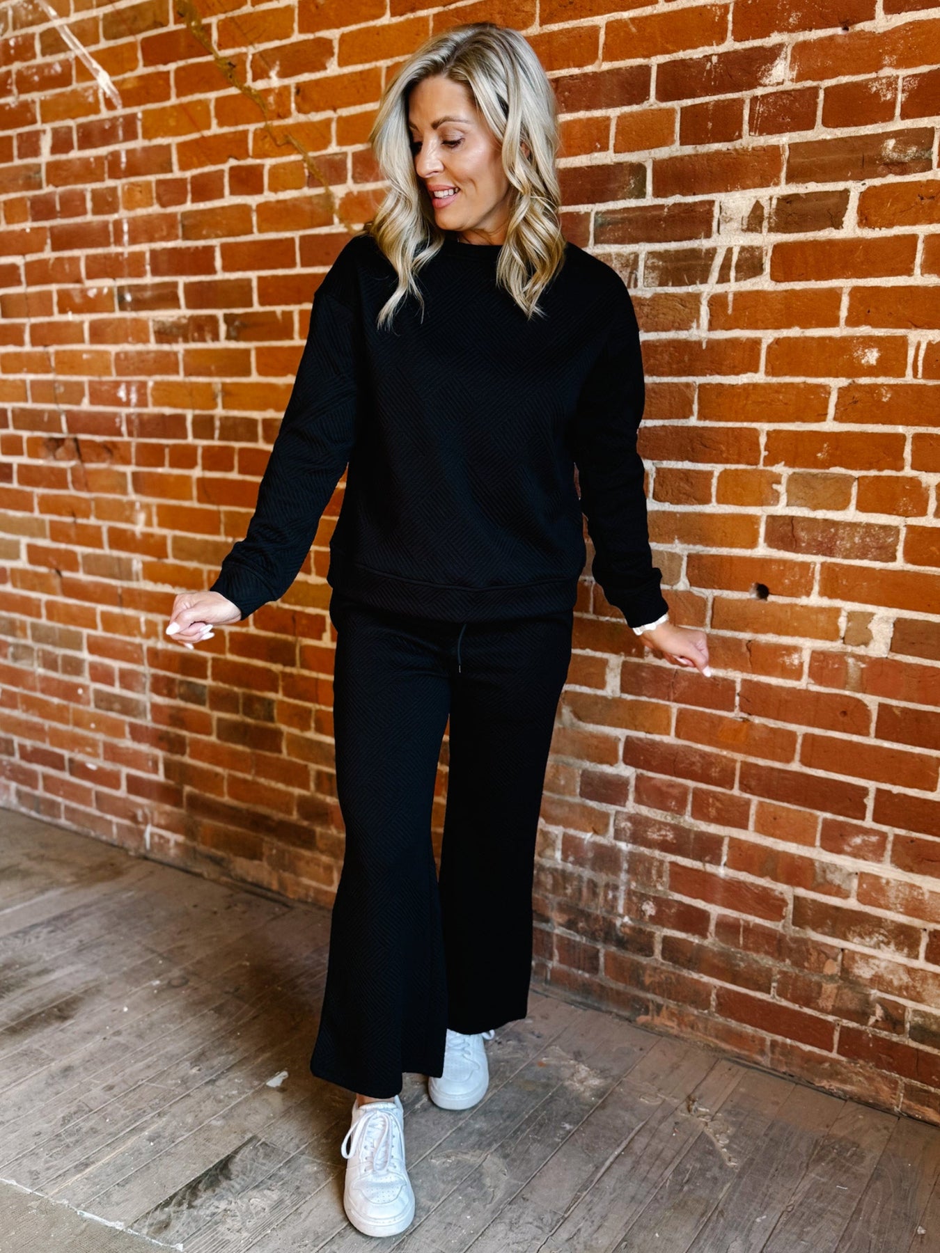The Easy Days Set is made for real-life comfort with a side of quiet luxury. Featuring a textured long-sleeve top and wide-leg pants with an easy elastic waistband and pockets, this set moves with you—from errands to evening unwind mode. Whether you mix and match or wear it as a full look, it’s effortlessly chic without even trying.