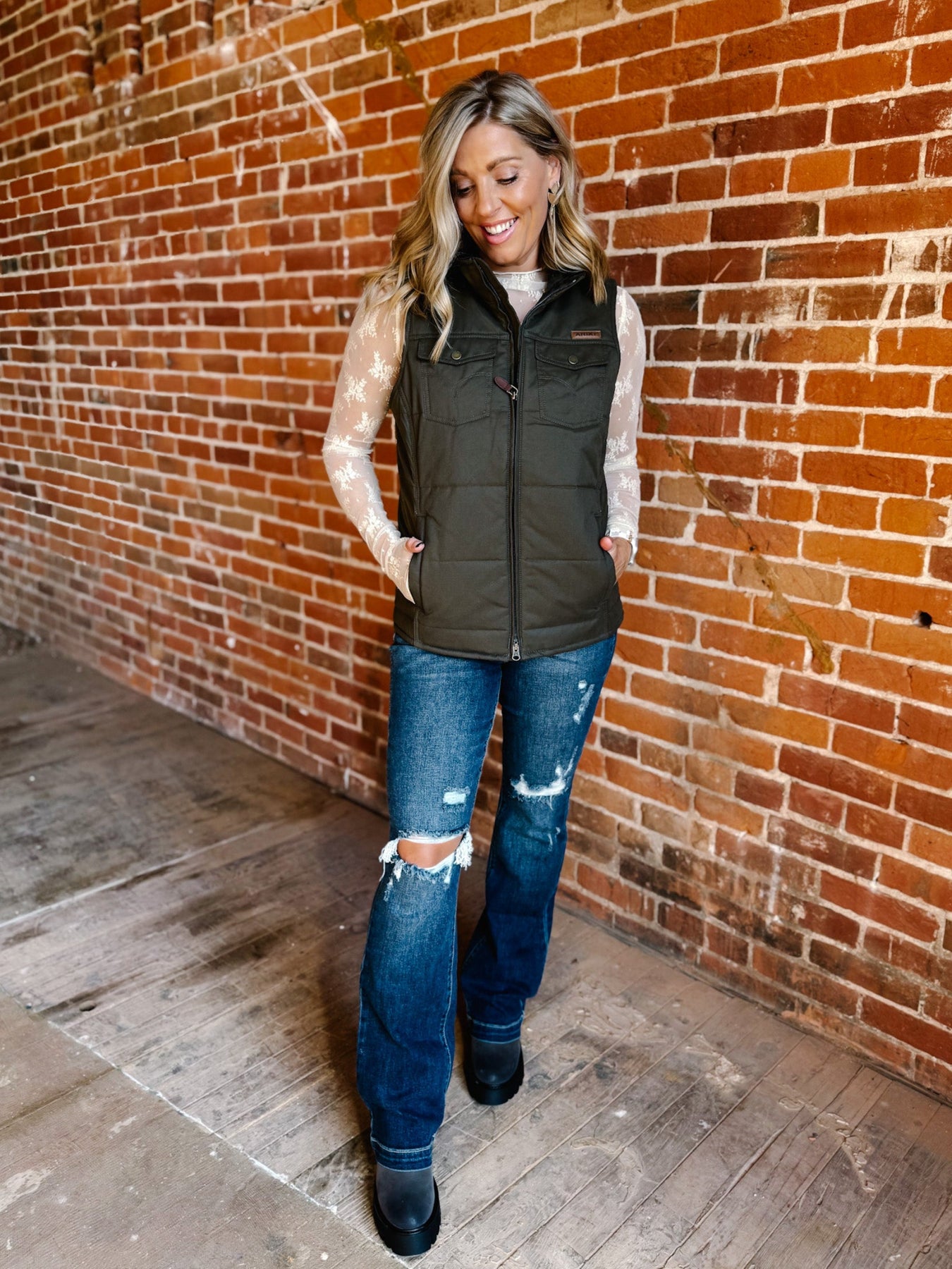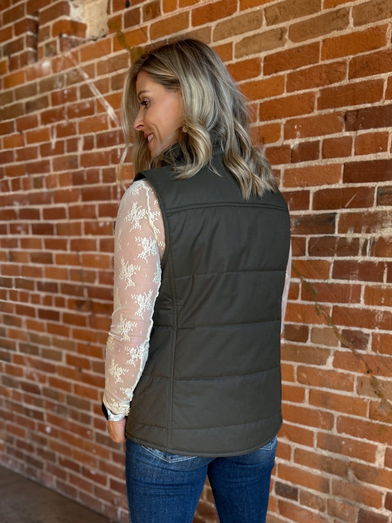 Built to take you from brisk mornings to evening strolls, the Grizzly Quilted Vest offers lightweight insulation with a wind-and-water resistant finish. Designed with Cool Climate Insulation™, this piece keeps you warm without the bulk while the breathable build ensures all-day comfort. Finished with functional handwarmer pockets and button-front details, it’s the perfect layer to throw over hoodies, flannels, or long sleeves.
