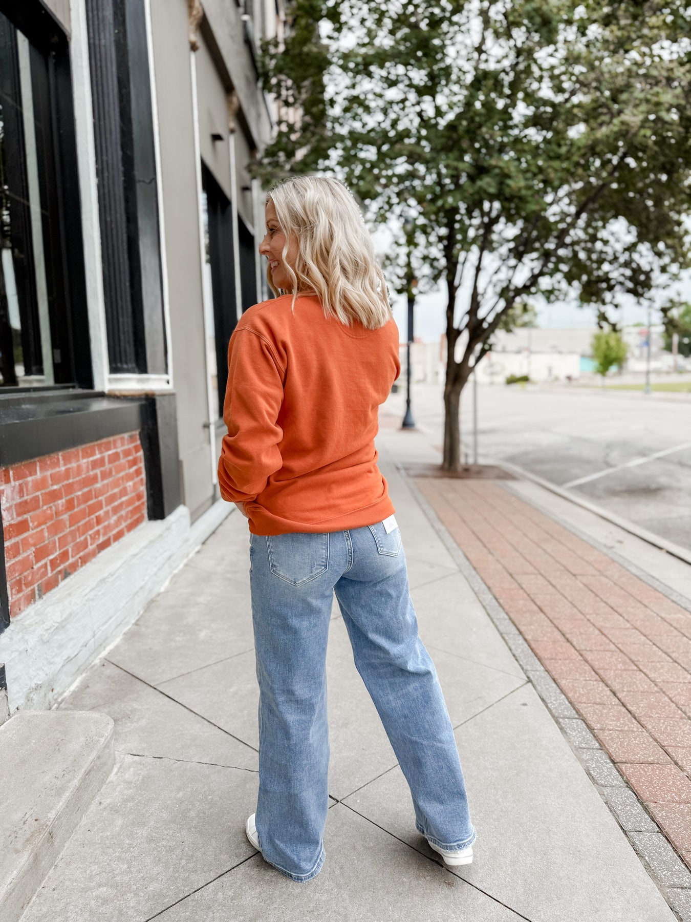 Distressed KC Crewneck Graphic Sweatshirt, Texas Orange
