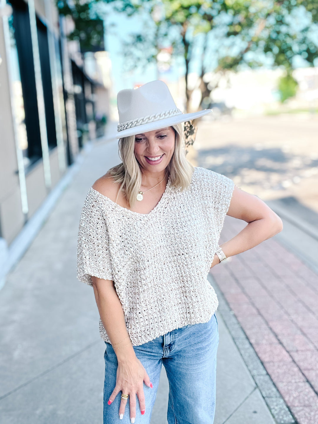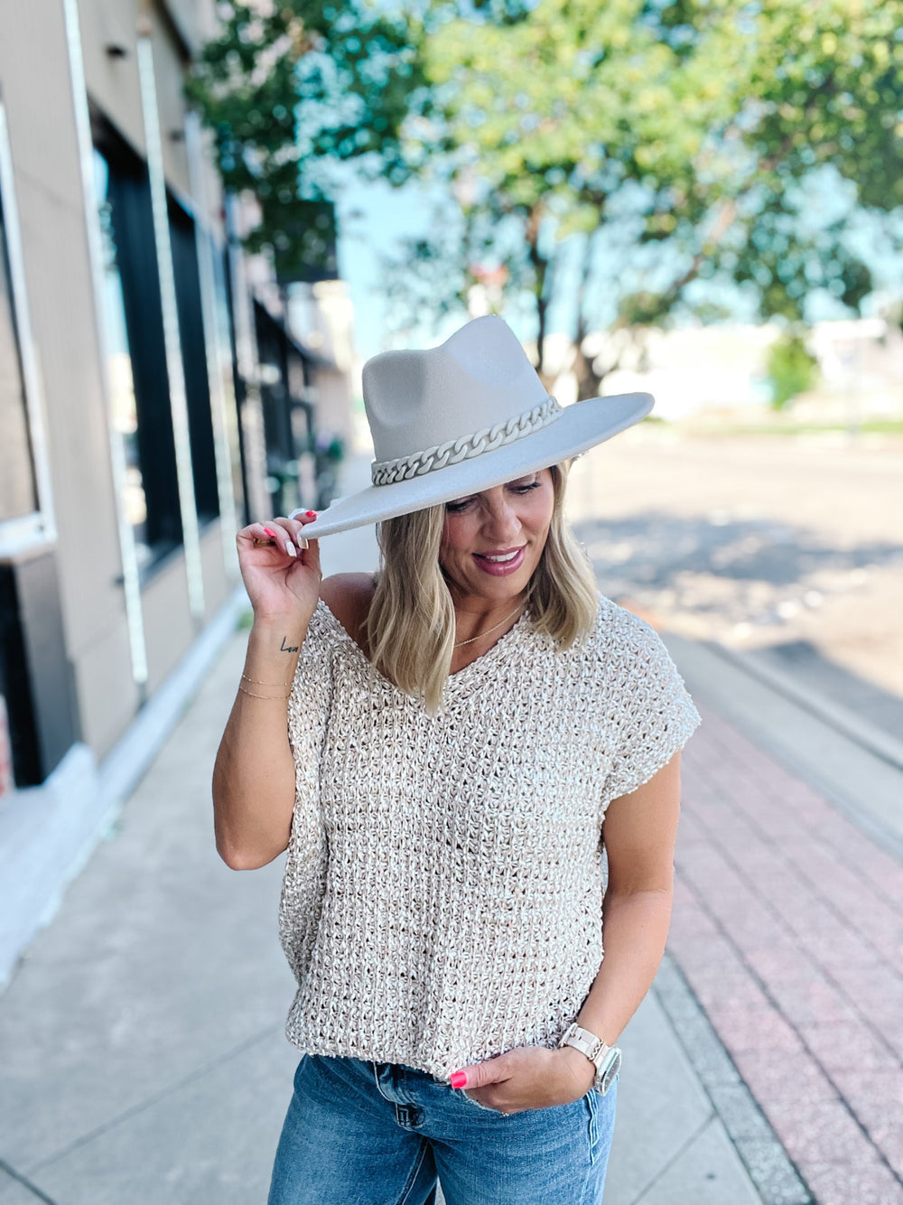 Curb Appeal Chain Link Wide Brim Hat, Ivory