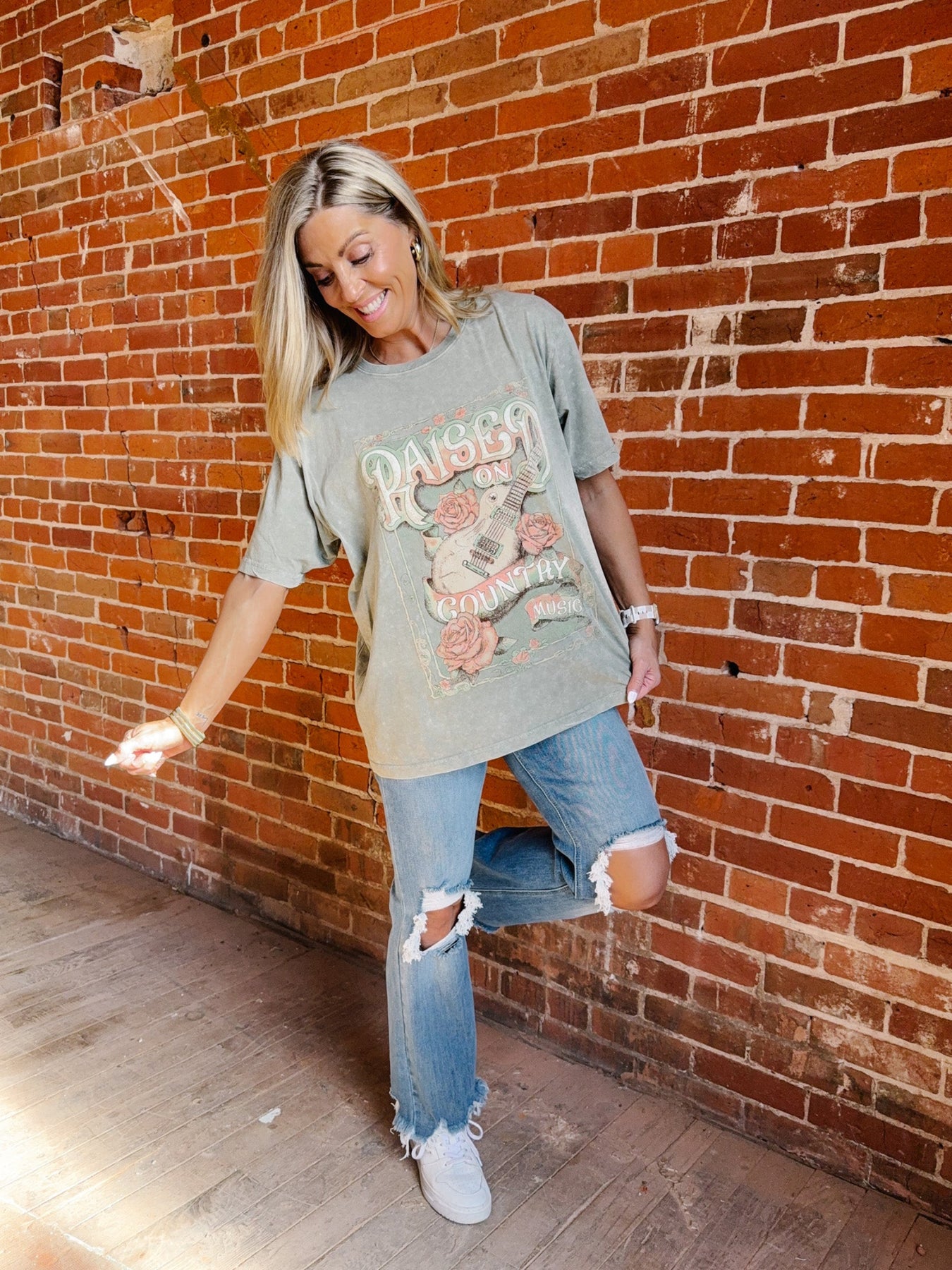 Bloomed Raised on Country Music Boyfriend Fit Graphic Tee