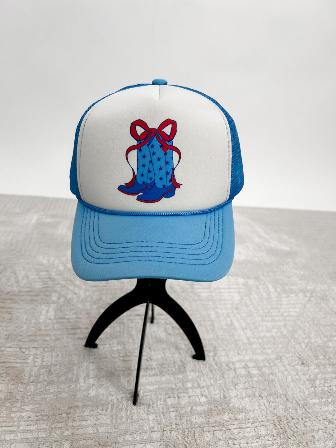 Star Print Boots with Bows Trucker Hat, Blue