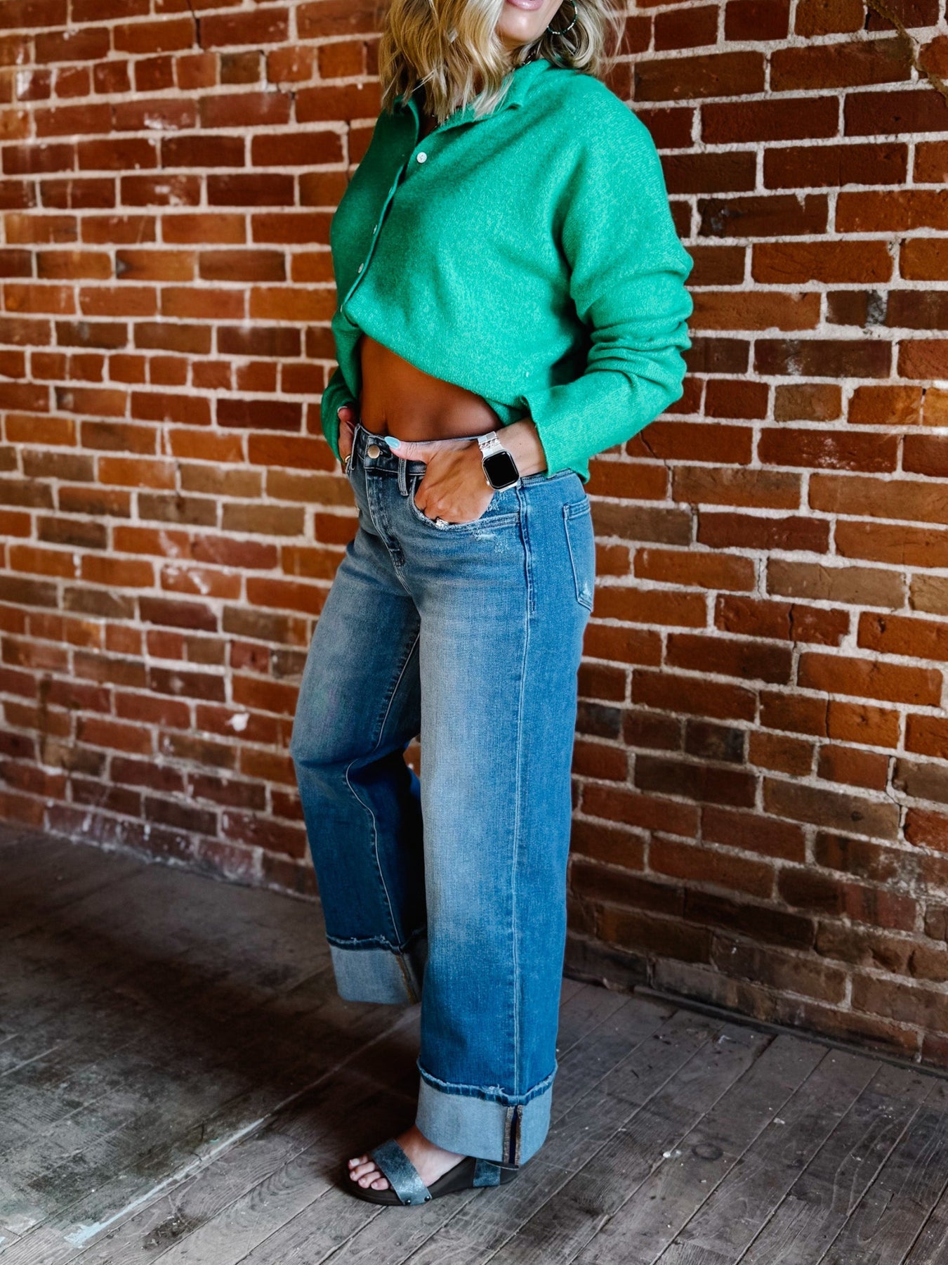 Cuffed Confidence High Rise Wide Leg Jeans – Effortless Structure, Everyday Cool