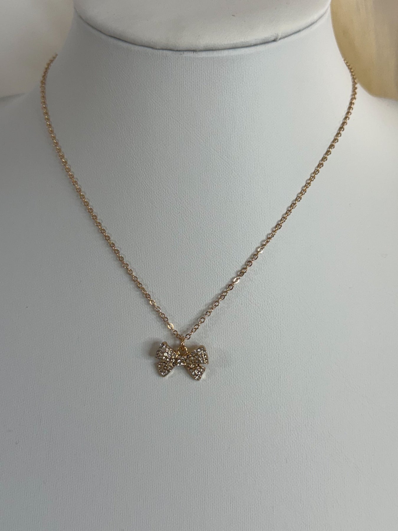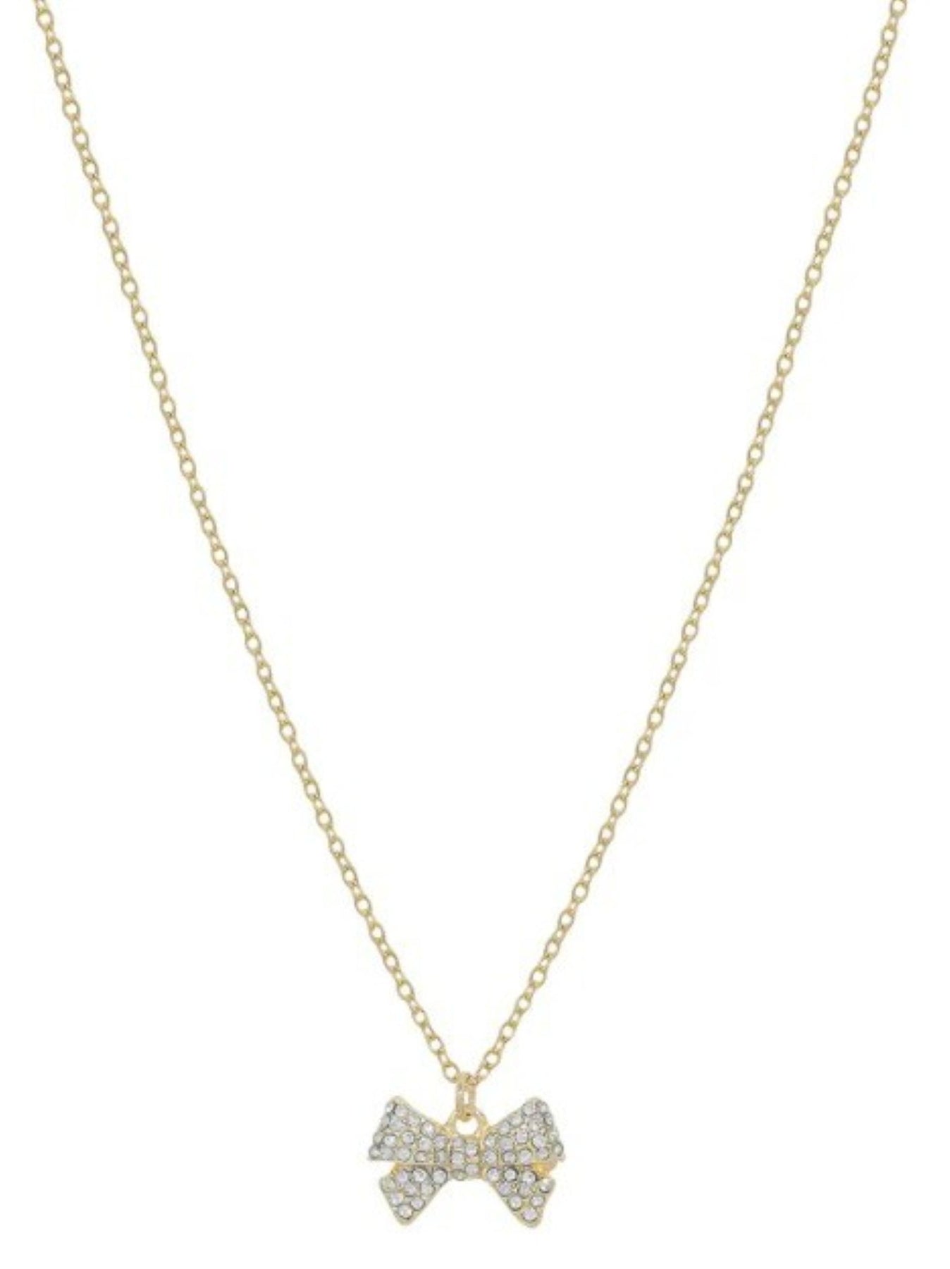 • Dainty rhinestone bow pendant for subtle sparkle