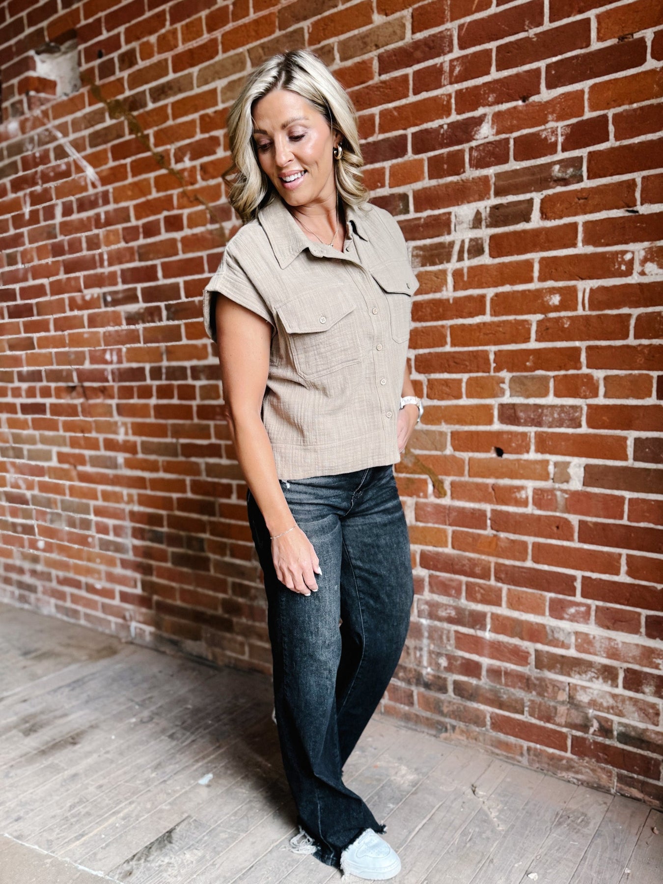 This is the kind of top that makes getting dressed feel effortless. The City Scout blends polished structure with relaxed ease, giving you that “put-together but not trying too hard” energy. Perfect for denim days, linen shorts, or layered under a jacket when you want a little edge with your everyday basics.