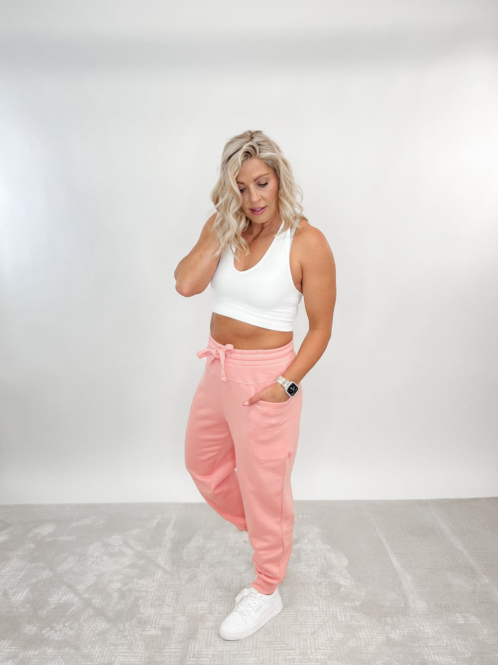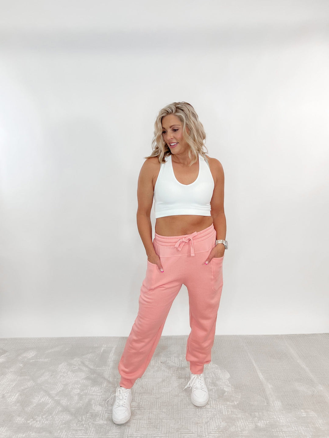 Bloom Floral Print Barrel Fleece Terry Pants, Cream
