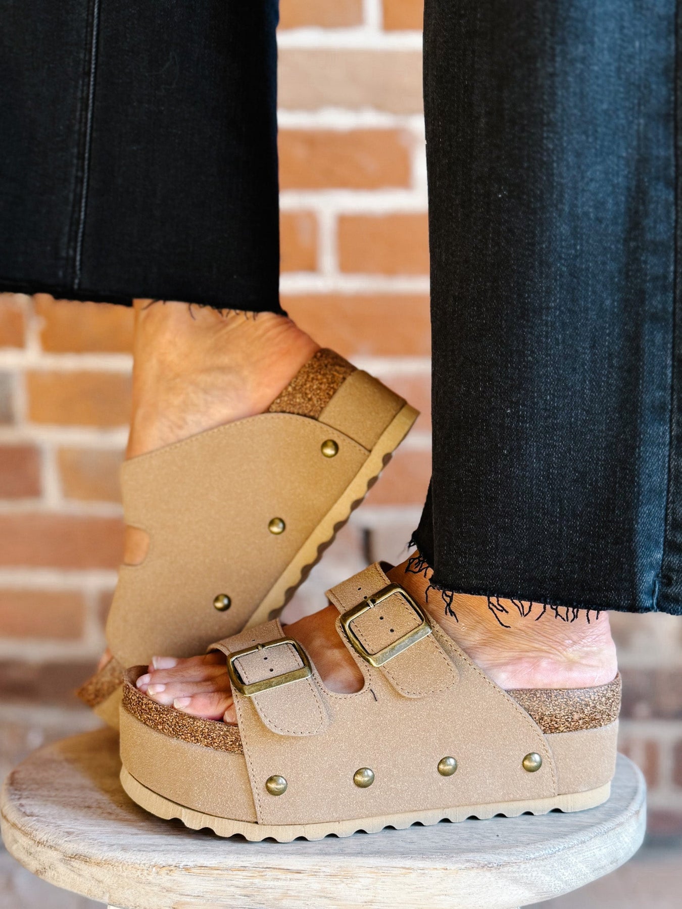 The Pueblo Suede Platform Sandals are the kind of shoes that instantly elevate a simple outfit without sacrificing comfort. Designed with a soft suede-like finish, bold stud detailing, and a cushioned cork platform, these sandals bring that laid-back-but-put-together energy we live for all summer long.