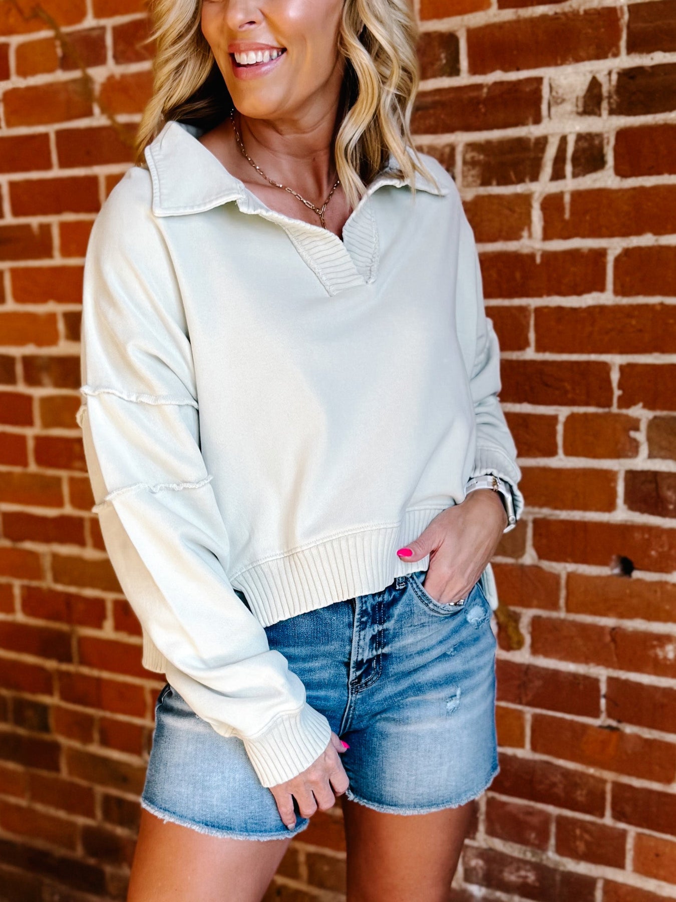 Easy Intent Mineral Wash Pullover – Sage