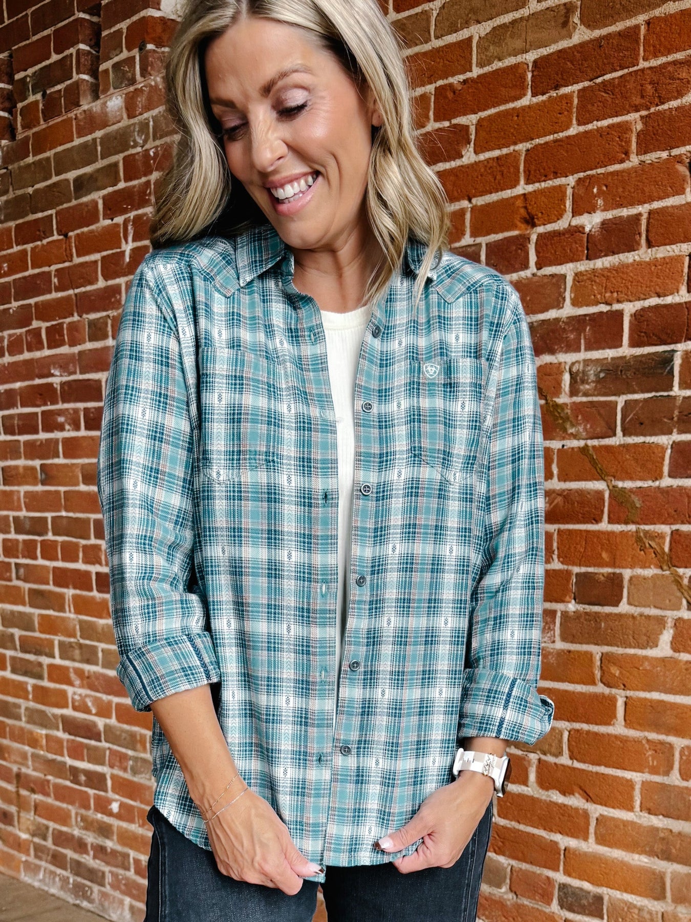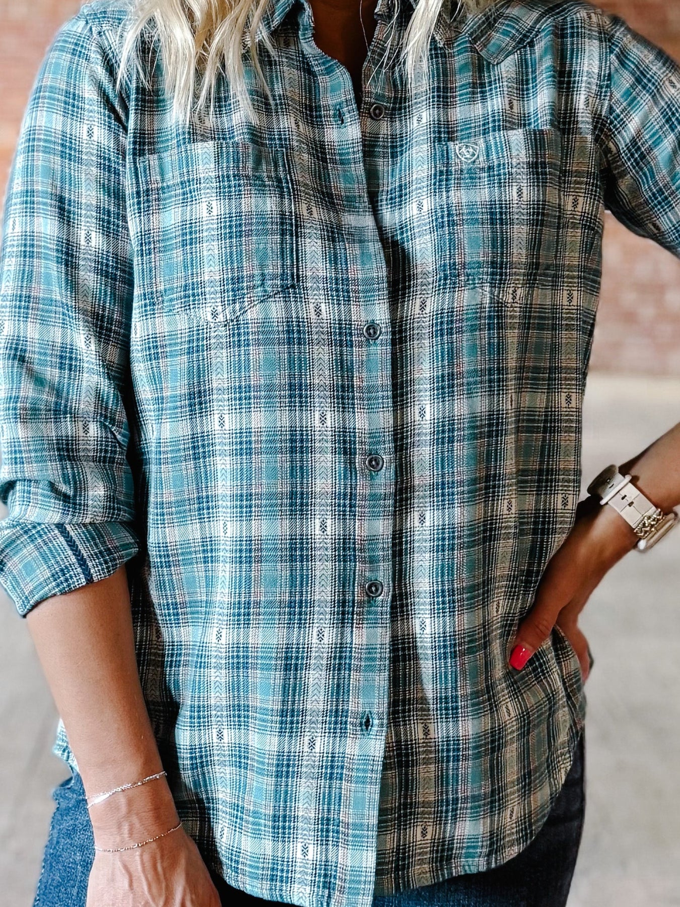 Your denim’s new best friend. The Ariat Billie Jean Button-Up brings together a relaxed fit, soft cotton feel, and classic chest pocket styling for a look that’s as timeless as it is comfortable. Pair it with boots and denim or layer it under a jacket for cool-weather rodeo vibes.