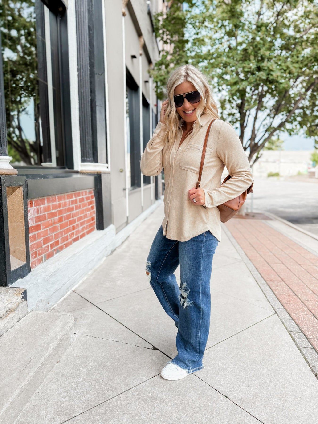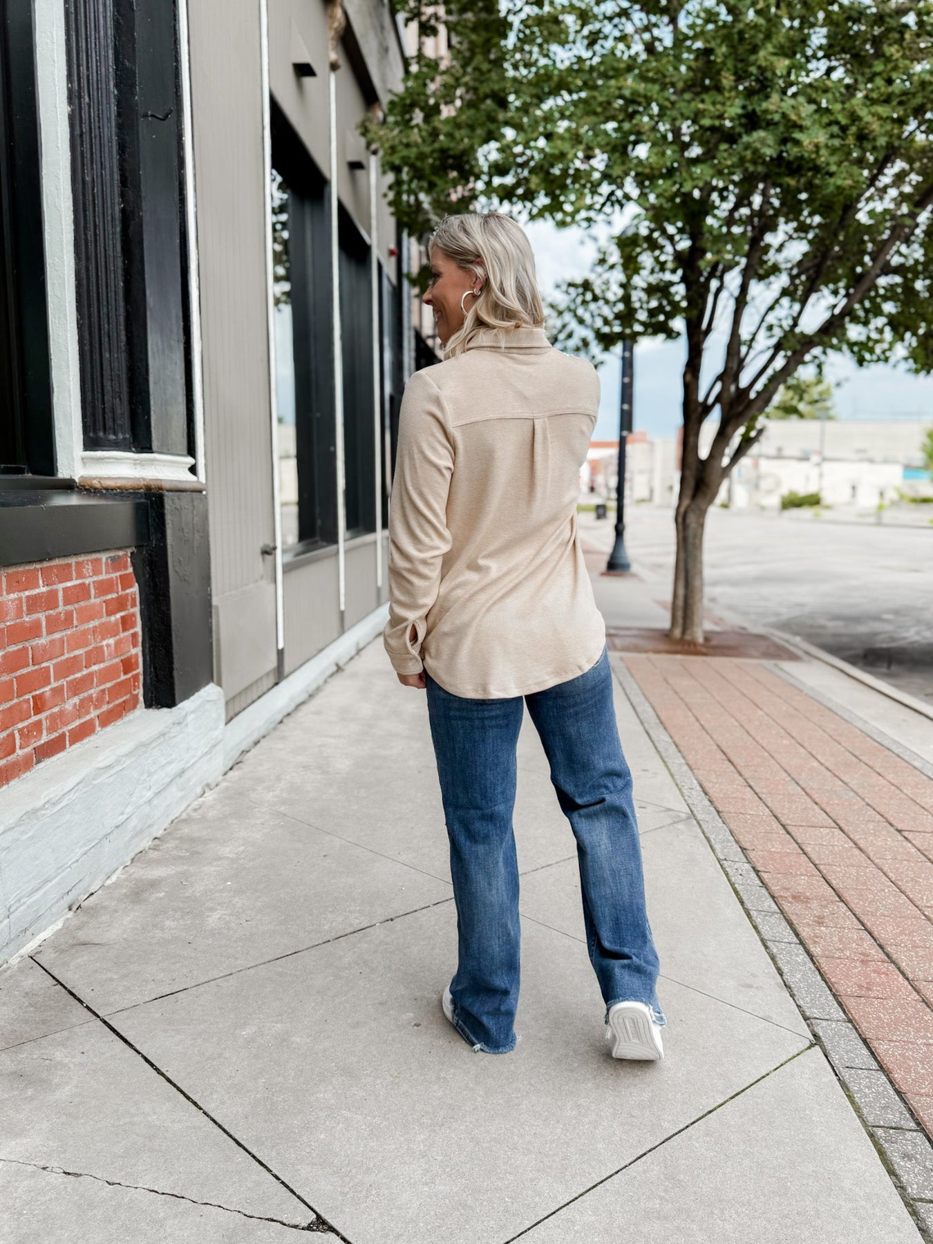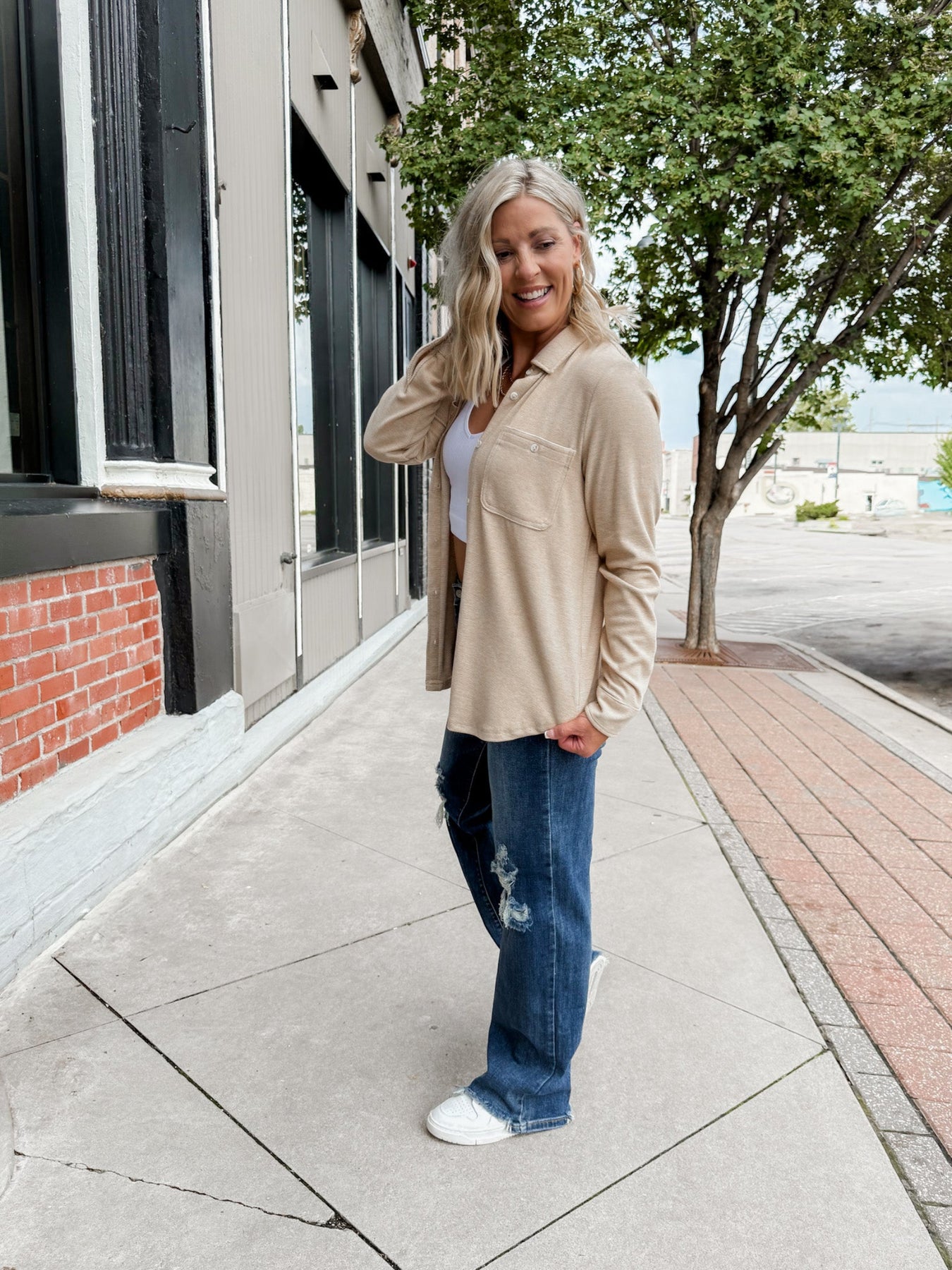 Your layering game just got an upgrade. The Lewis Striped Button-Up combines a soft knit feel with structured shirt styling—perfect for throwing on over your basics or buttoning up with your favorite denim.