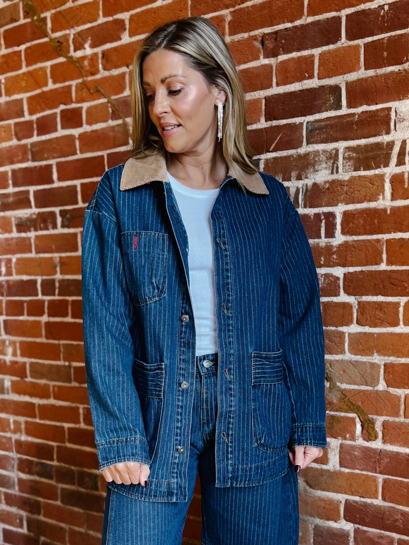 The Rowen Striped Oversized Denim Jacket – Indigo Pinstripe