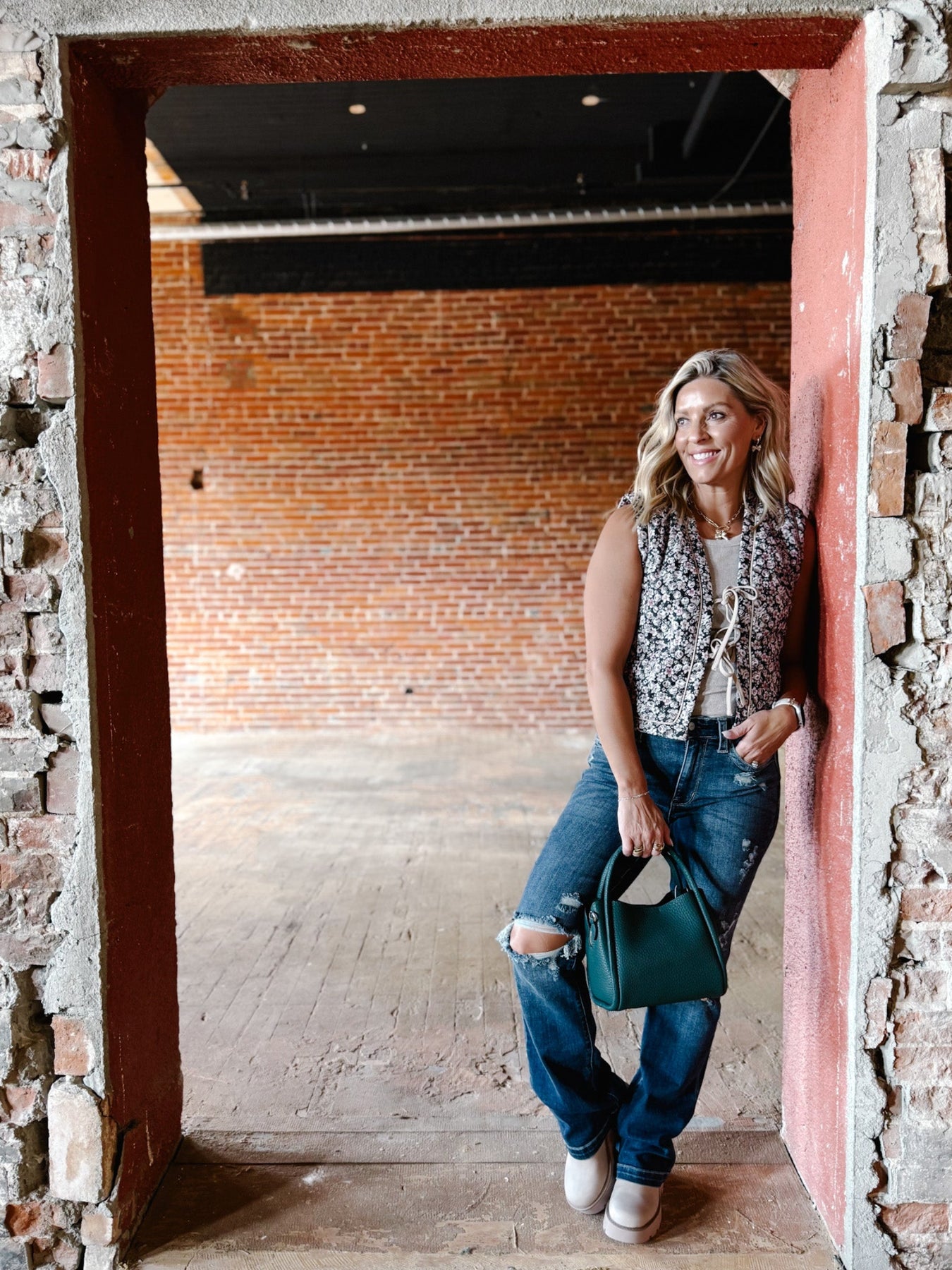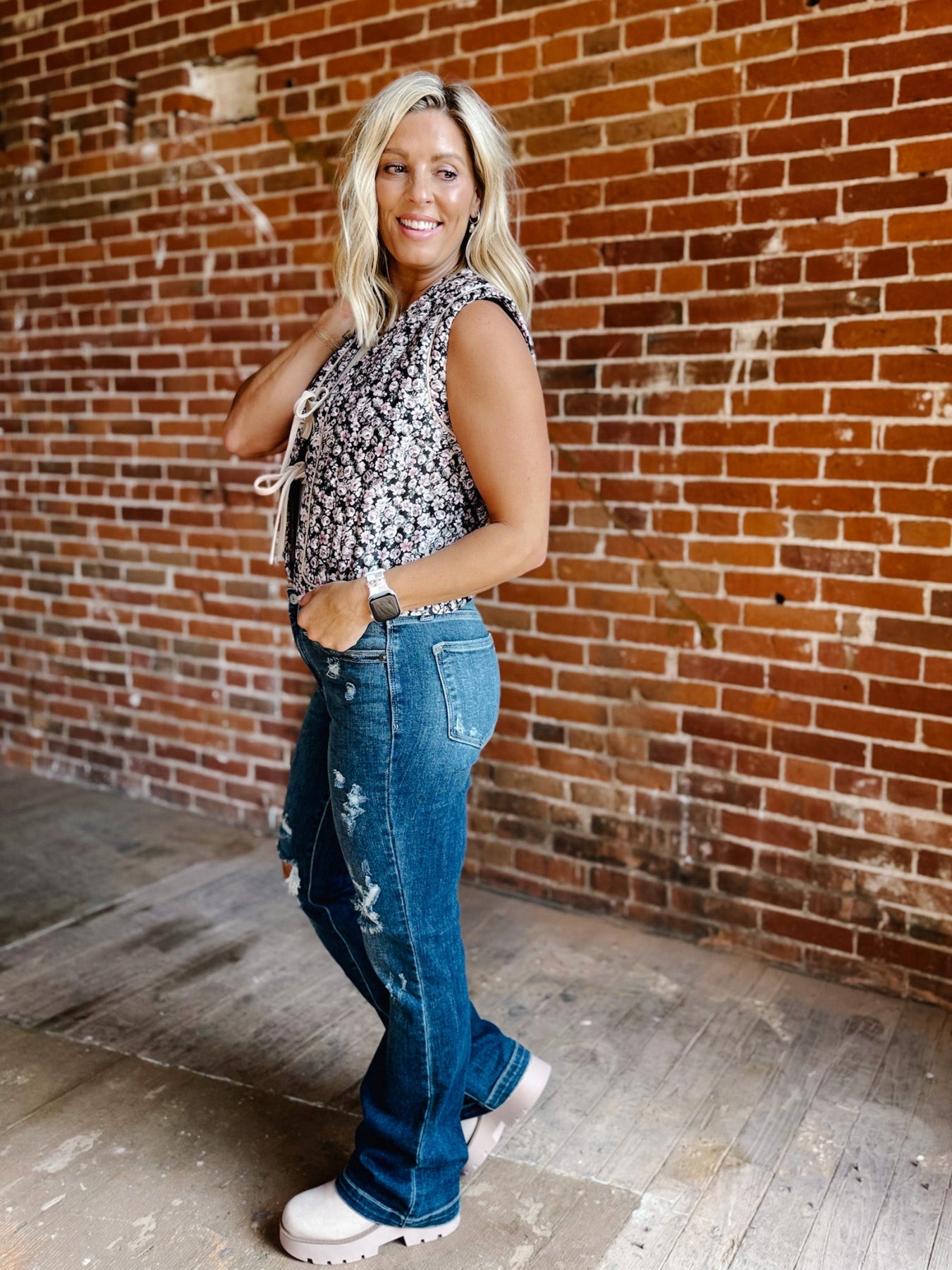 Slip into something that feels like a crisp breeze and a warm memory. The Whispered Layers Vest brings a sweet, grounded charm with its vintage floral quilted texture and soft neutral tones—perfect for those transitional Midwest days when layering is key.