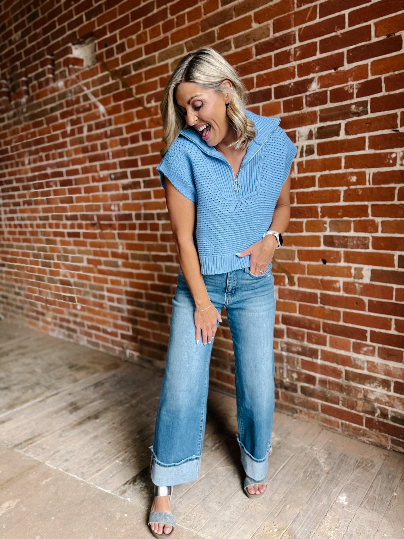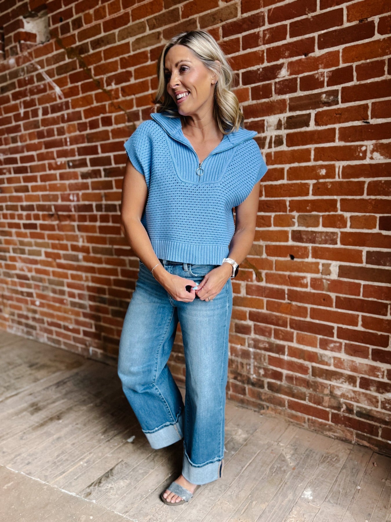 The Highline Sweater is a modern layering piece that brings polish and personality to your closet. Designed with a bold quarter zip, high neckline, and cap sleeves, this soft knit top delivers structure and softness all in one. Whether worn solo or under a blazer, it’s your new go-to for casual office days, dinner plans, and everything in between.