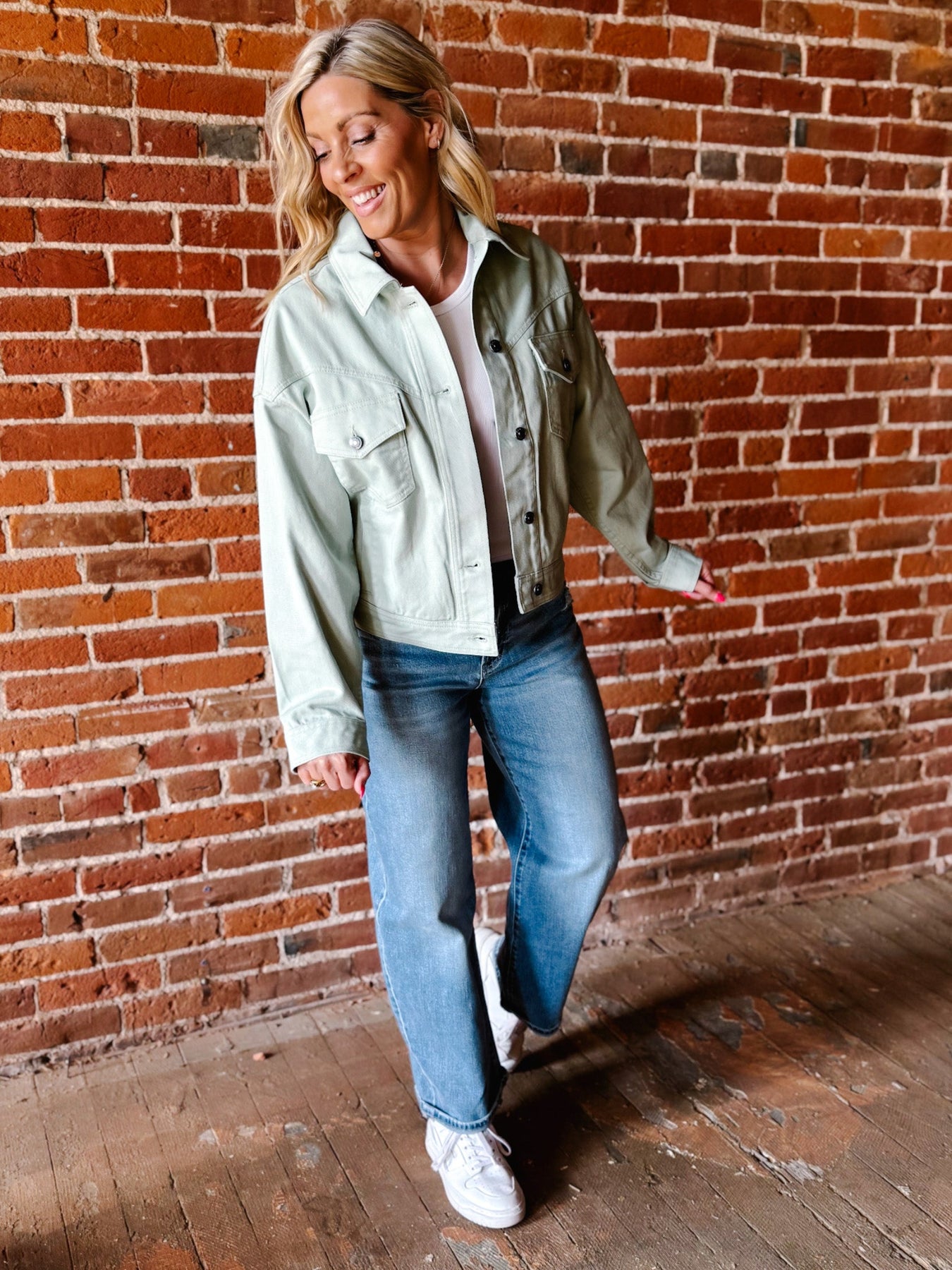 Solar Cotton Twill Trucker Jacket – Silt Green