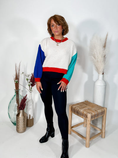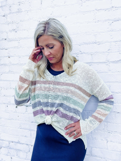 Après All Day Bold Stripe Sweater, Teal/Pink