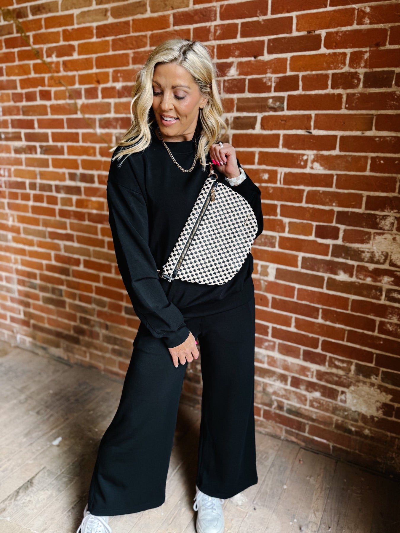 Not your average bum bag. The Westlyn packs style and practicality in one standout piece. With woven vegan leather and statement straps (block or checkered print), this belt bag-style crossbody brings a cool factor to every outfit. Bonus points for the chevron-lined interior and hidden zip pocket for your cards or gloss.