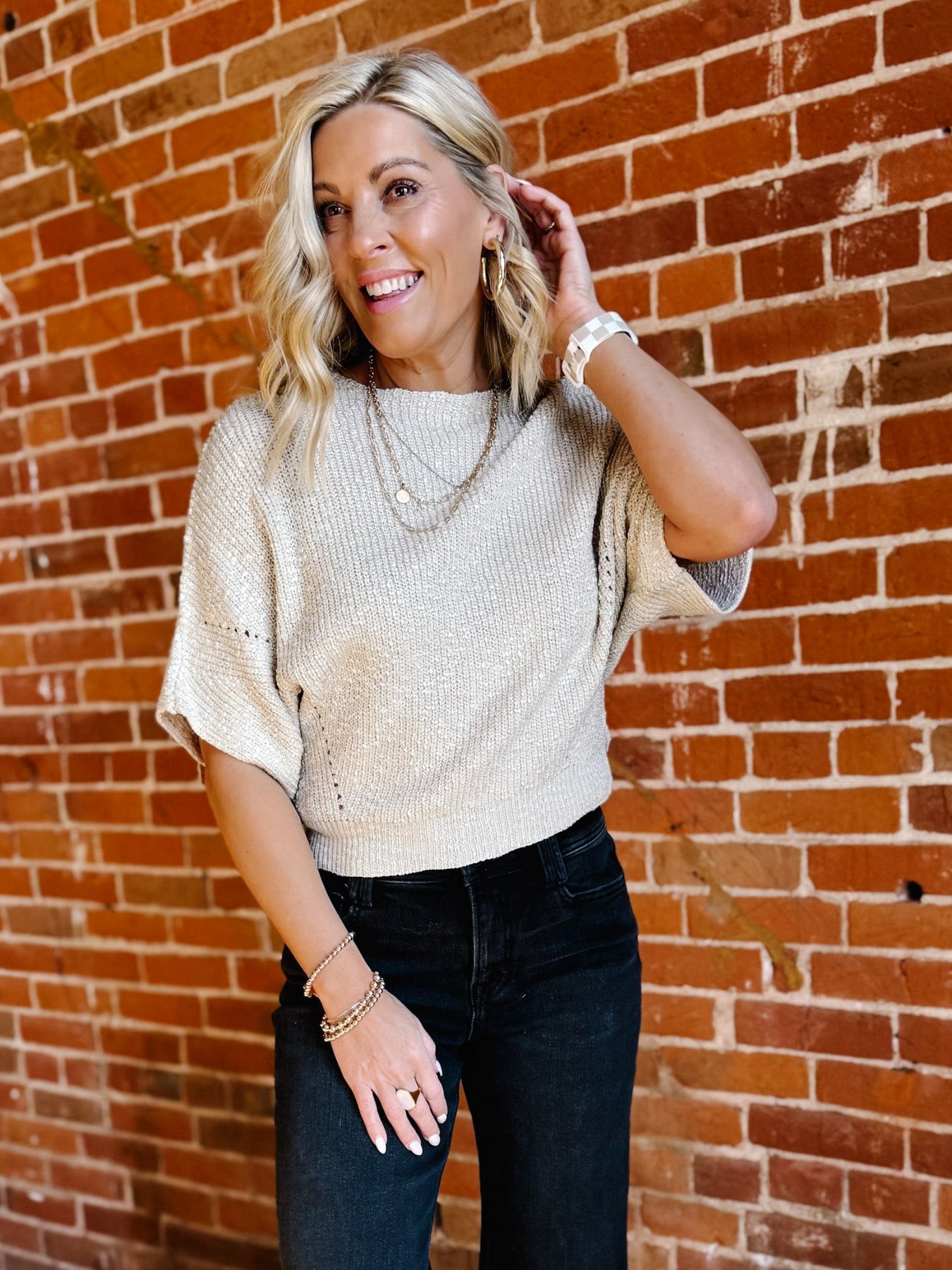 Your off-duty style just got a glow-up. The Cozy Confessions Knit Sweater brings that lived-in softness with an airy knit texture and an easygoing silhouette. From the boat neckline to the dolman sleeves, it’s made for front-tucking, lounging, or layering like a pro. Pair it with cargos, denim, or even a bralette peeking through—zero wrong answers.