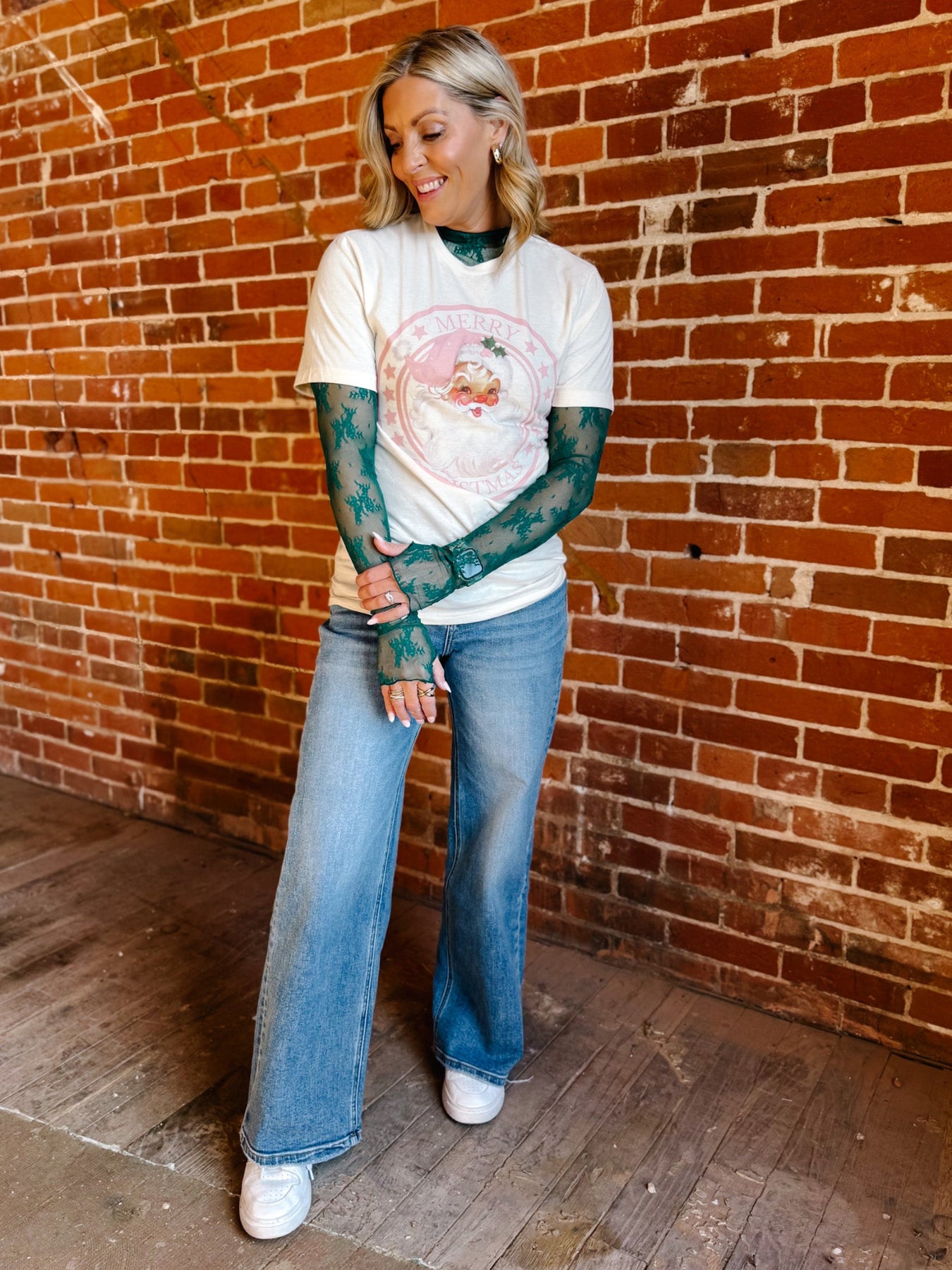 The Merry Christmas Santa Circle Tee brings nostalgic holiday vibes with a soft pastel twist. Featuring a jolly retro Santa framed by a pink “Merry Christmas” circle and star border, this tee captures cozy festive cheer in the sweetest way. Printed on a soft natural-colored unisex tee, it’s perfect for pairing with jeans, plaid bottoms, or cozy cardis all season long.