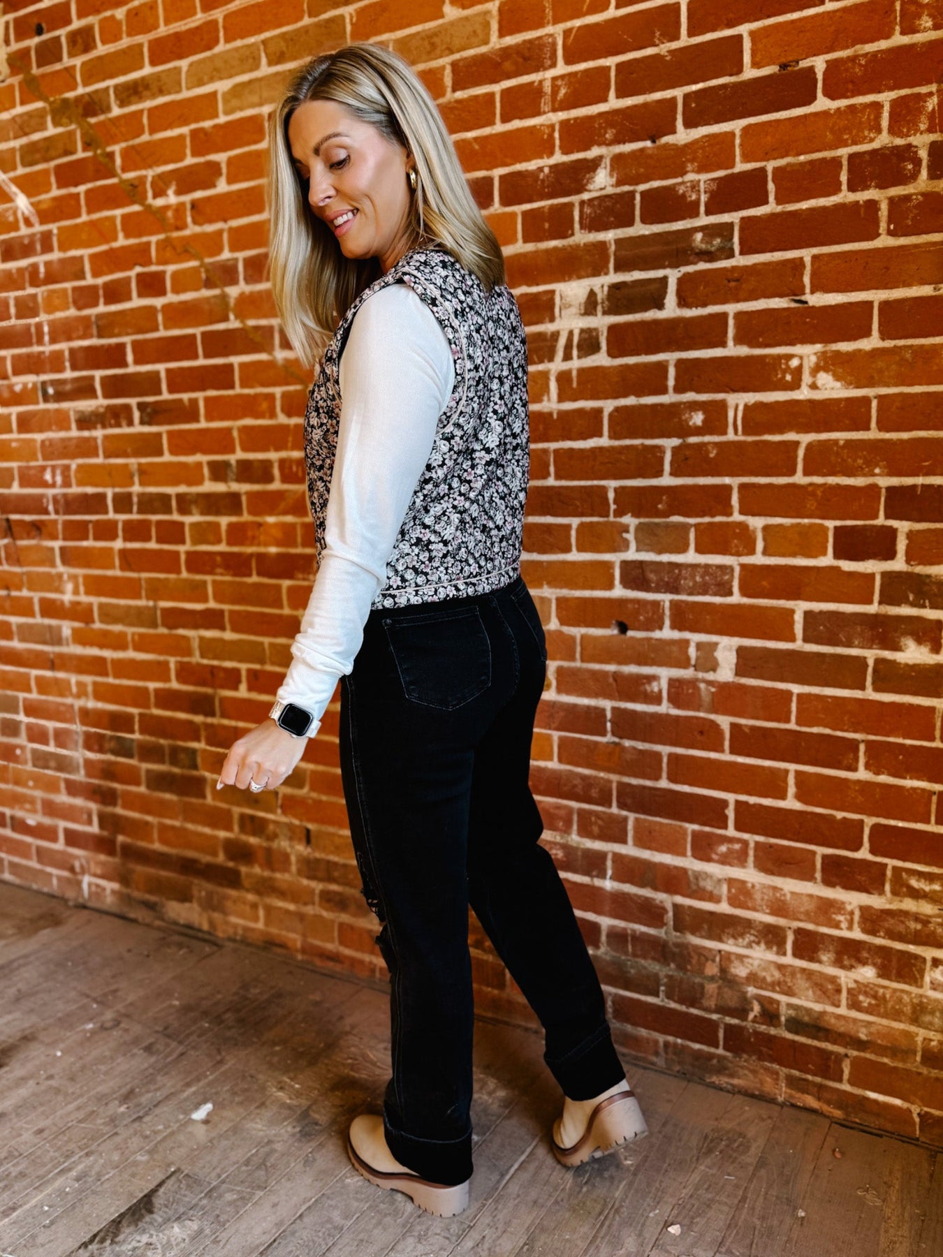Slip into something that feels like a crisp breeze and a warm memory. The Whispered Layers Vest brings a sweet, grounded charm with its vintage floral quilted texture and soft neutral tones—perfect for those transitional Midwest days when layering is key.