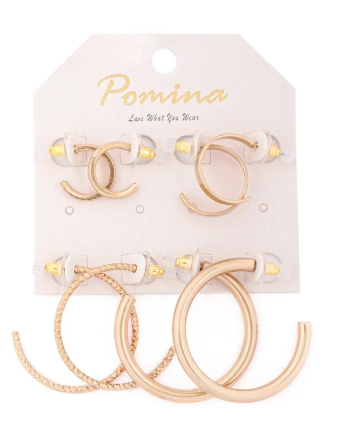This 4 Piece Hoops Set will have you living the high life! This four-piece set has hoops in four different sizes and a beautiful matte gold finish. Look super chic and get ready for compliments when you accessorize with this 4 Piece Hoops Set! 💃