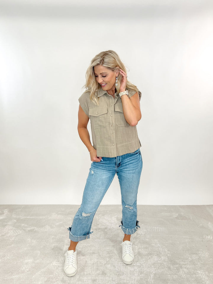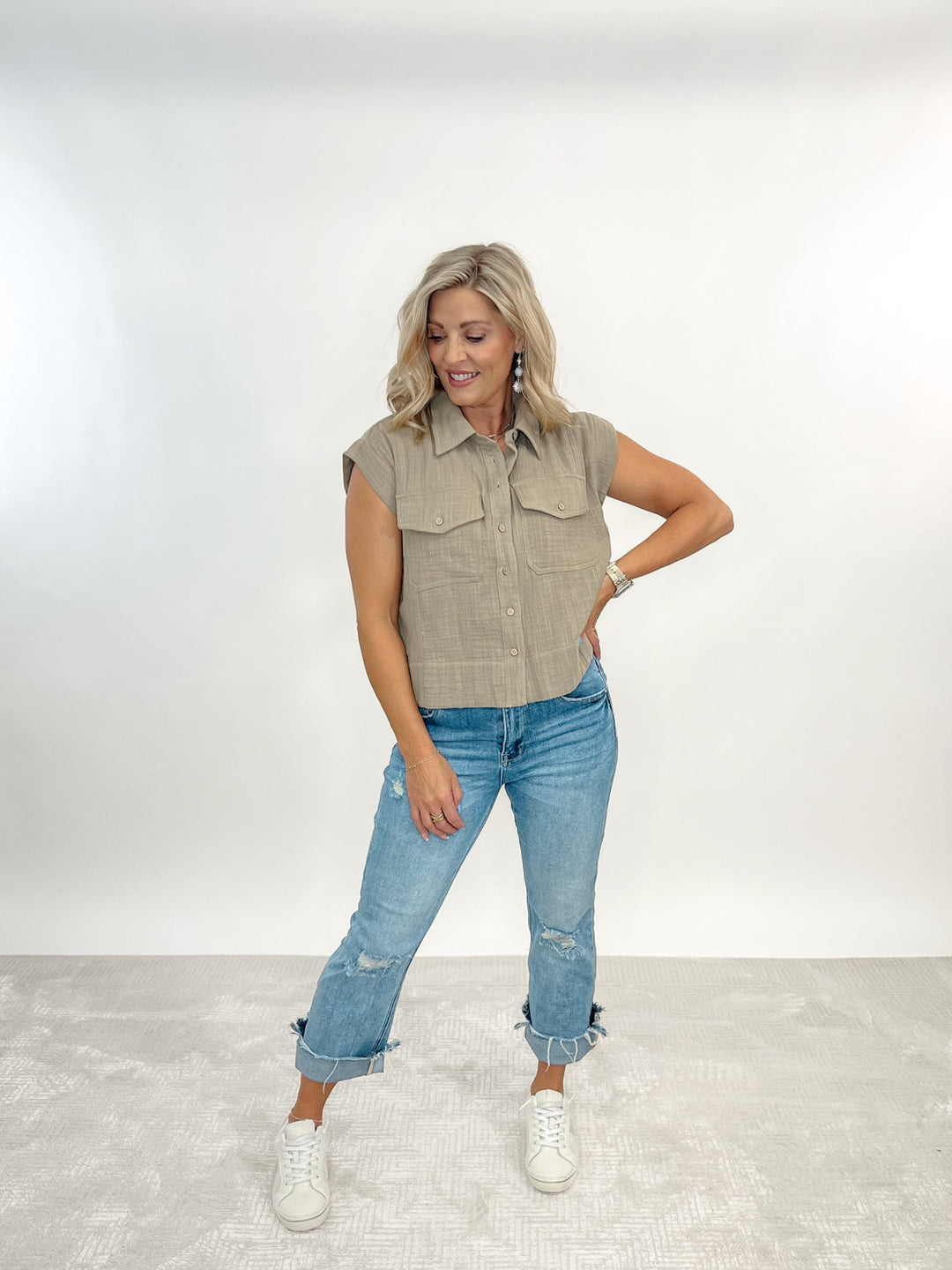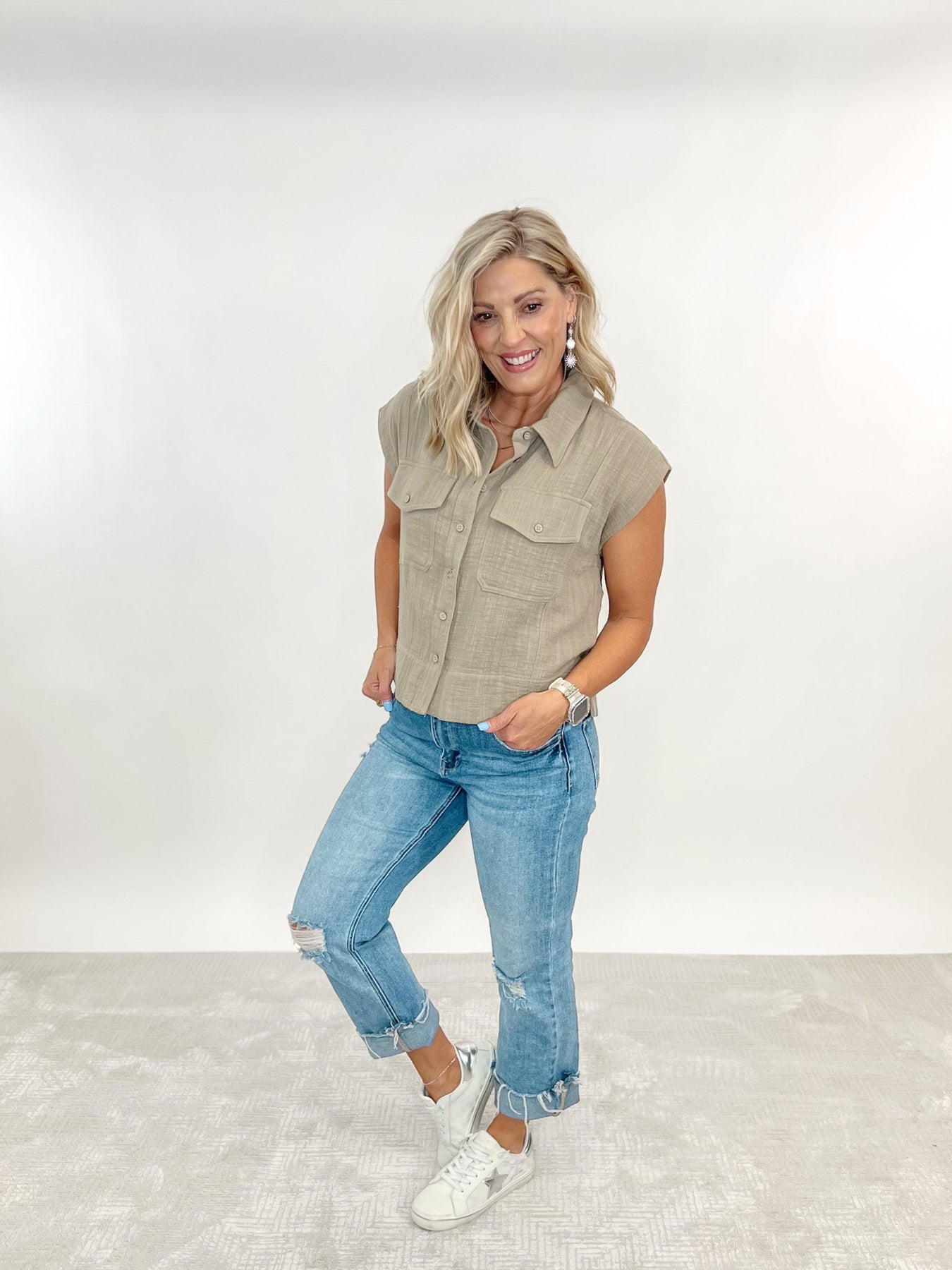 This is the kind of top that makes getting dressed feel effortless. The City Scout blends polished structure with relaxed ease, giving you that “put-together but not trying too hard” energy. Perfect for denim days, linen shorts, or layered under a jacket when you want a little edge with your everyday basics.