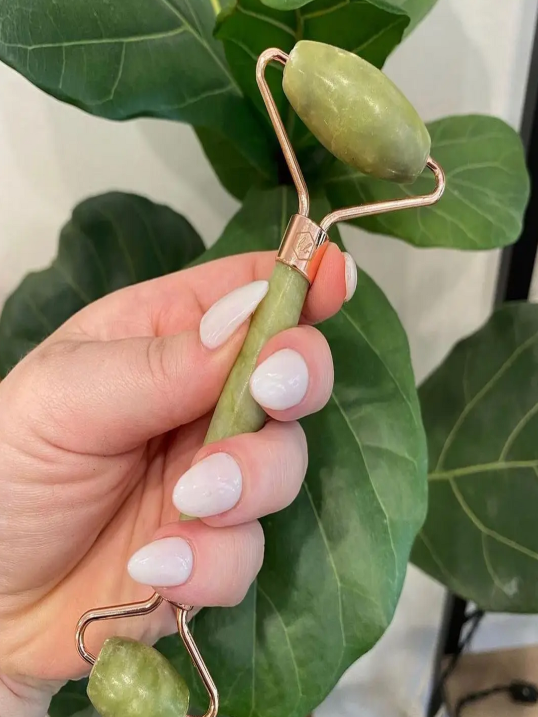 Our amazing facial roller is a beauty tool made of jade used for face massage. The gentle pressure helps stimulate circulation and leave the facial muscles more relaxed. The naturally cooling sensation helps relax the skin, depuff, and soothe inflammation.
