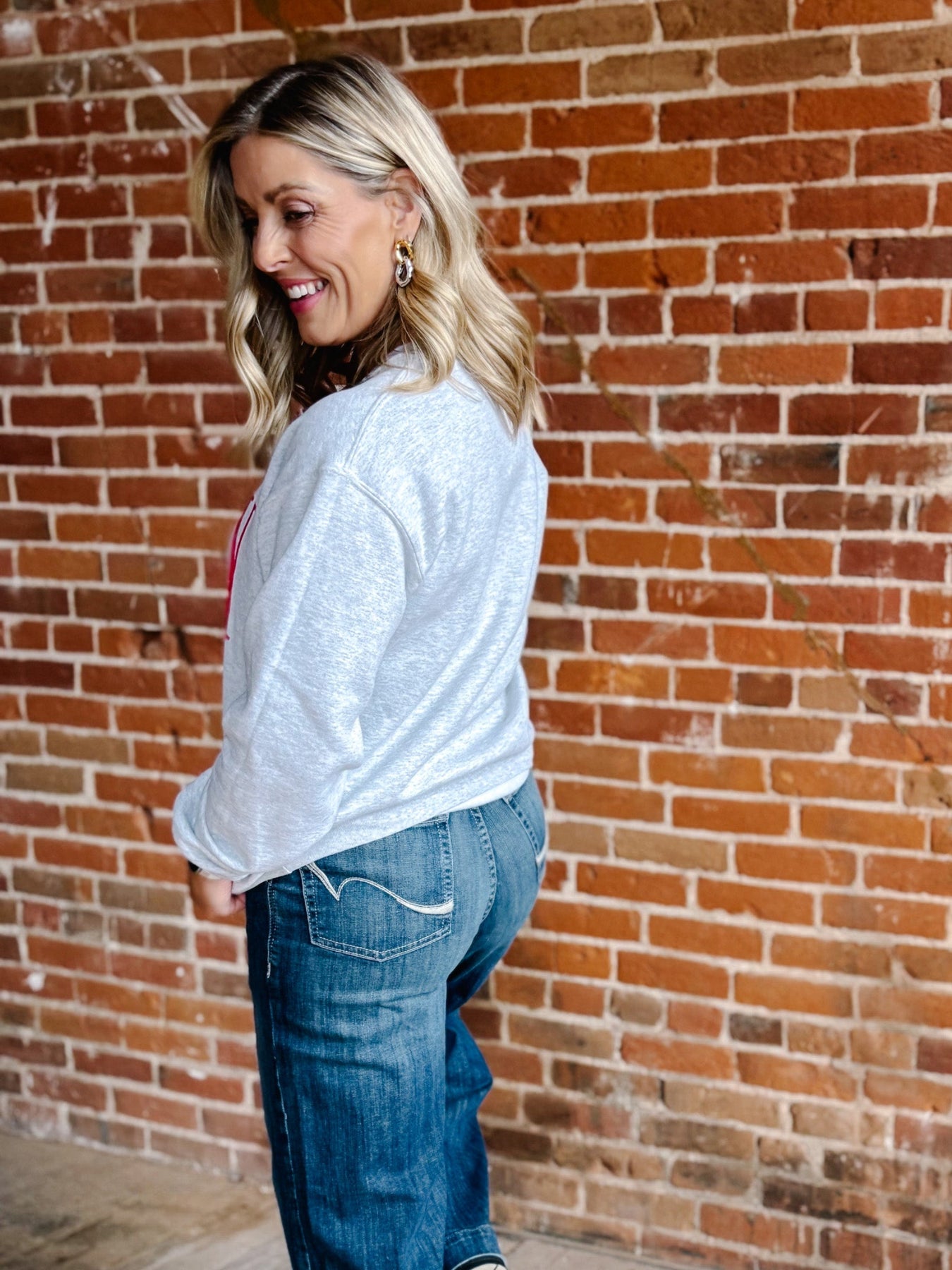 The Kansas City Chiefs Repeat Sweatshirt brings all the team spirit with a playful stacked graphic and a classic women’s fit. Soft, cozy, and easy to style, this grey must-have is perfect for chilly stadium nights, couch-side cheering, or running errands between plays. It’s KC pride made cute.