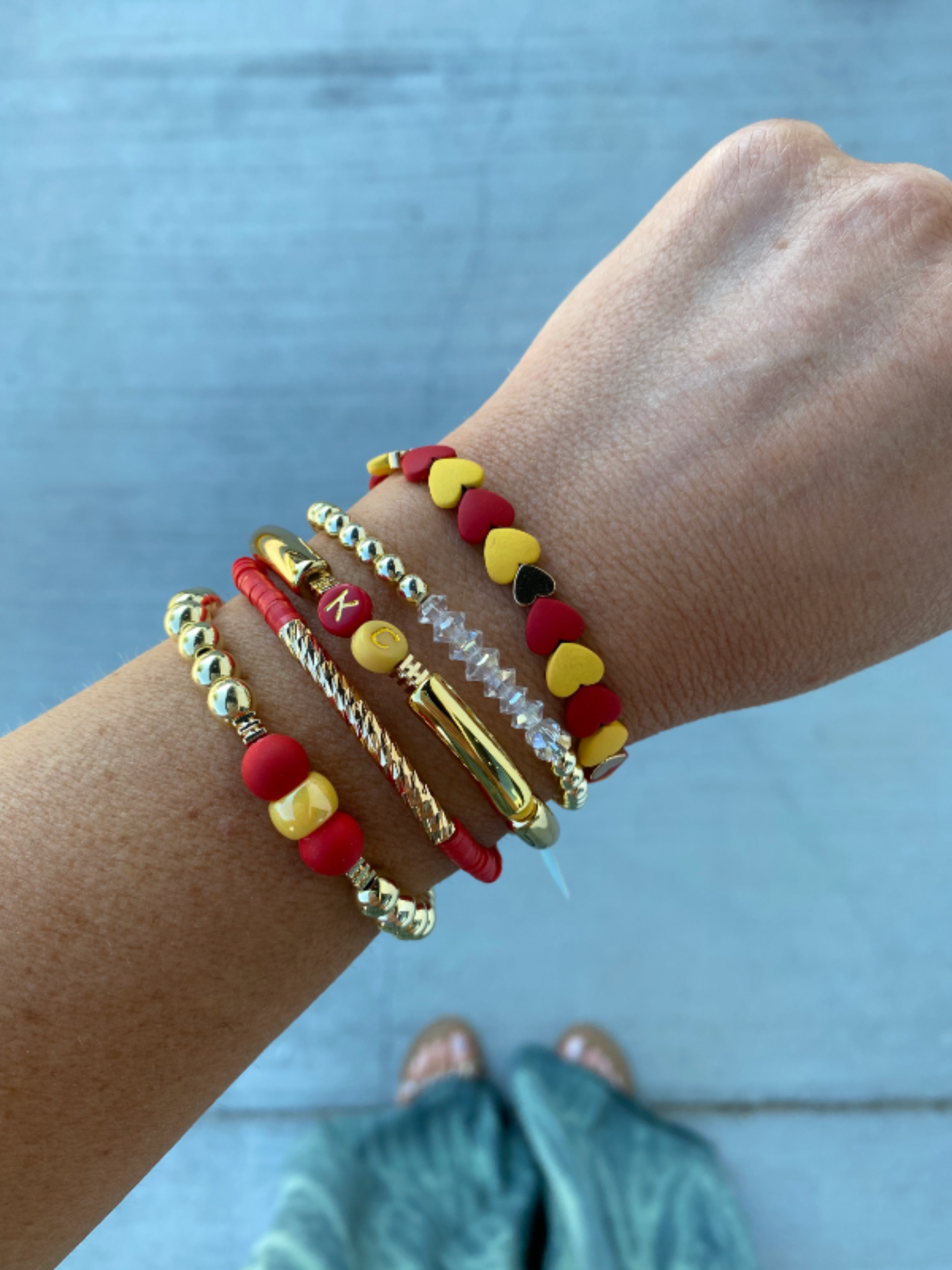 These bracelets are perfection—the ultimate way to elevate your accessory game this season. Designed with Kansas City pride in mind, the bracelets mix bold reds, yellows, golds, and whites for a look that’s both spirited and stylish. Perfect for gameday outfits or adding a pop of color to your everyday style, this stack is a must-have.