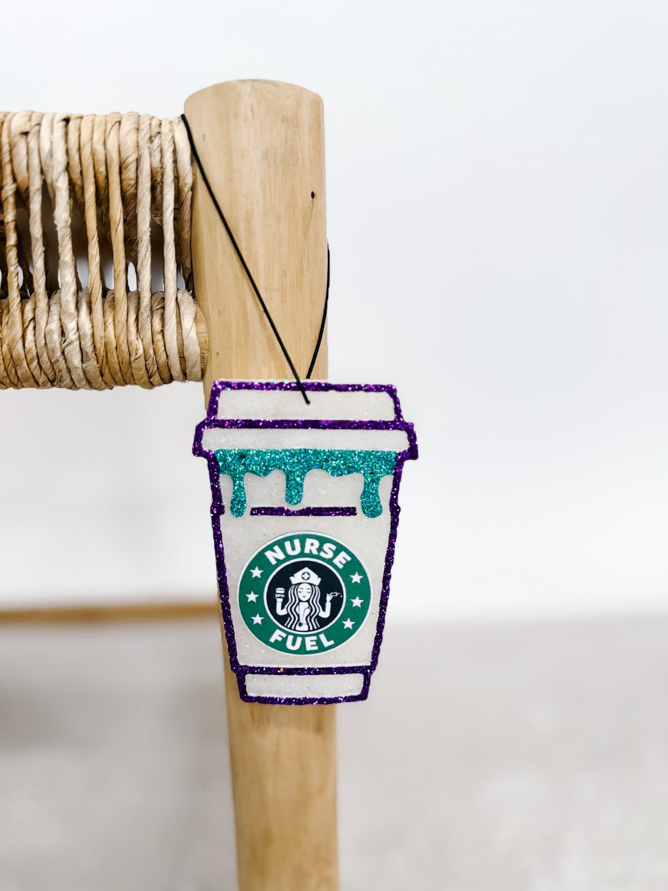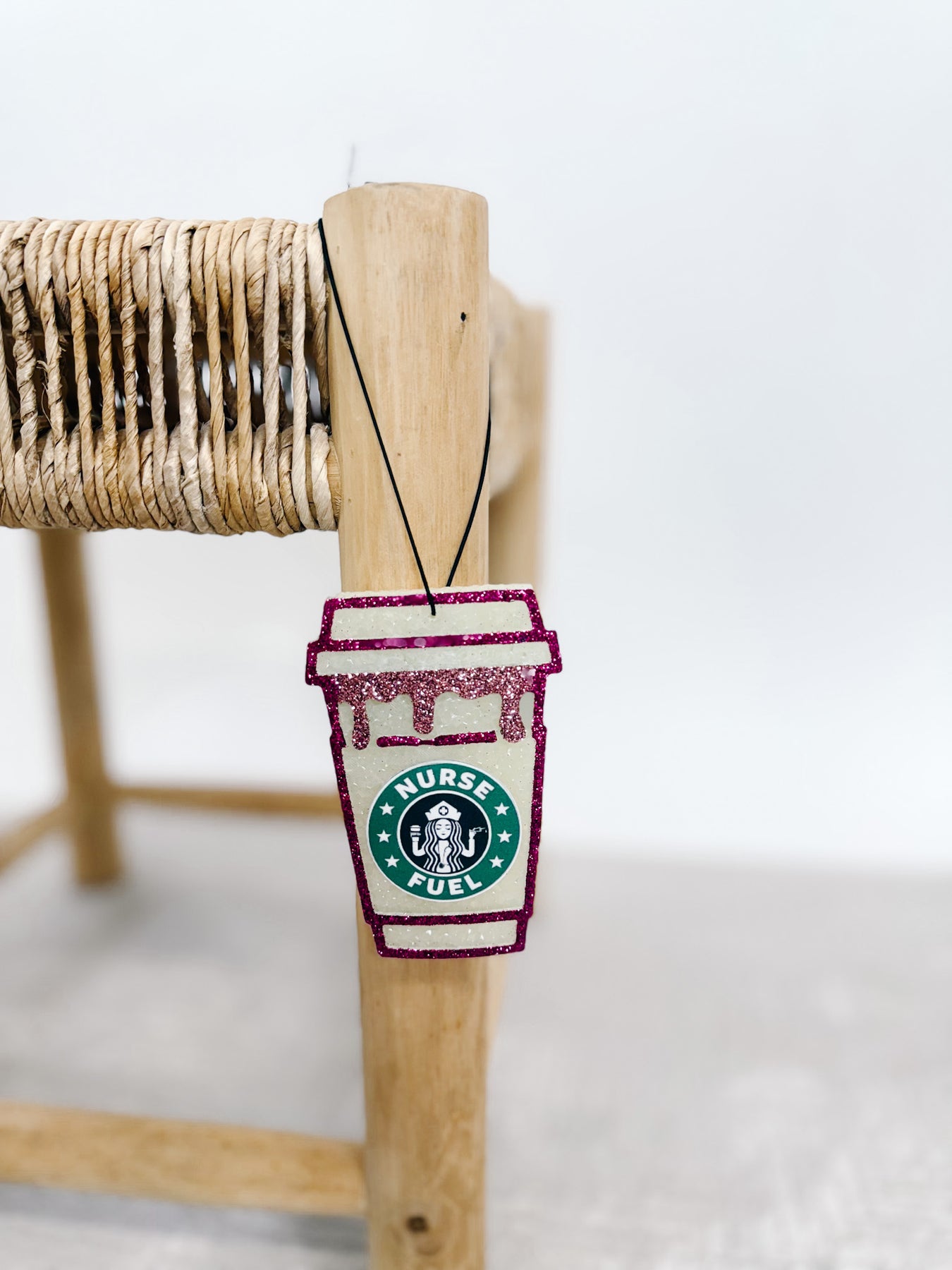 Keep your ride smelling as fresh as your morning coffee with our Nurse Fuel Car Freshie. Designed for hardworking nurses (and anyone who runs on caffeine), this handmade freshie is shaped like a to-go coffee cup with glittery details and scent options that last for weeks. The perfect pick-me-up for your car, or a thoughtful gift for your favorite nurse.