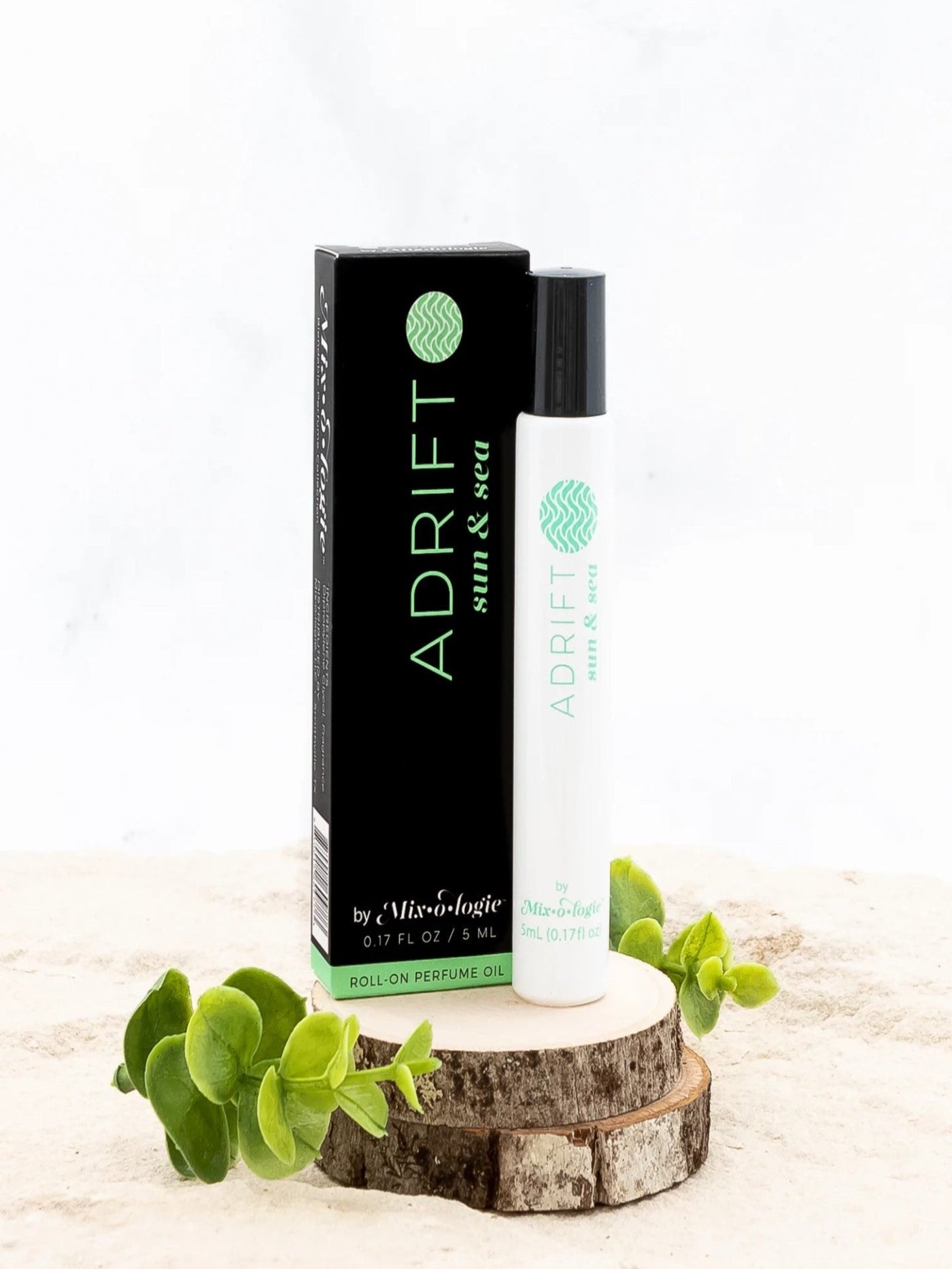 • Adrift – Bergamot, airy bamboo, jasmine & musk with amber and white floral undertones—like a beach breeze in a bottle