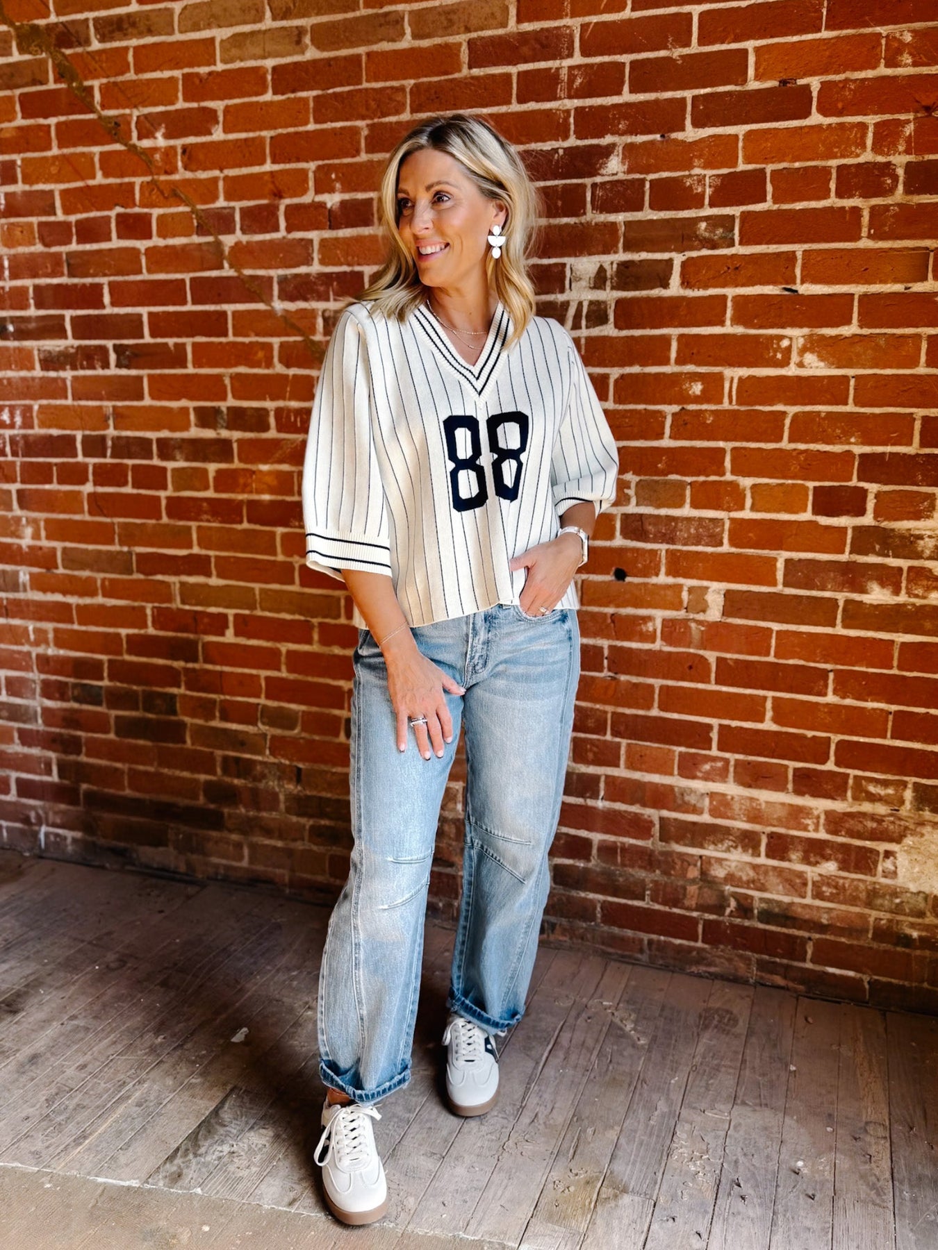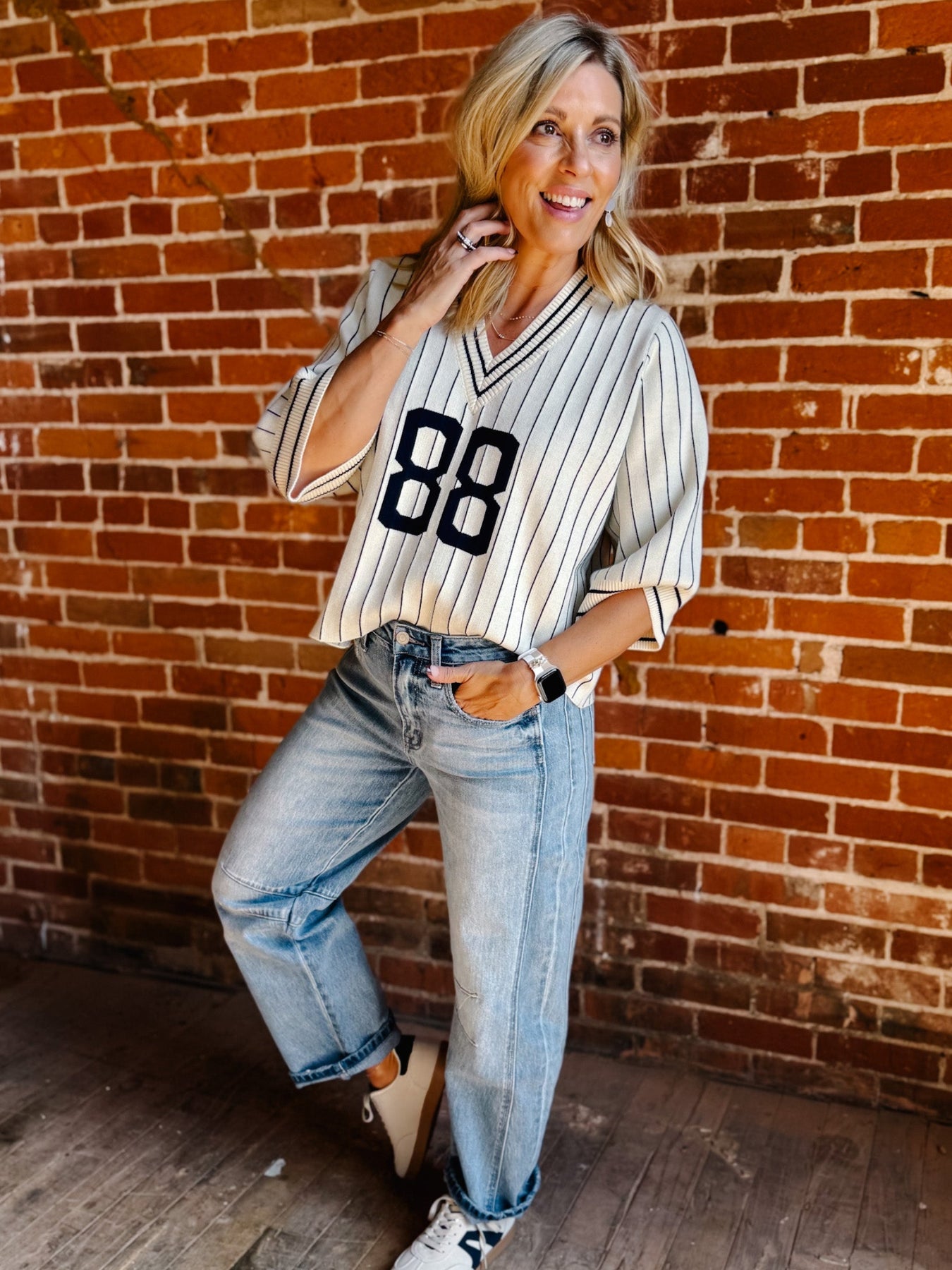 Bring the energy of the bleachers into your everyday lineup with the Sideline Star Sweater. This retro-inspired varsity knit serves up major throwback charm with a cool, cropped silhouette and timeless pinstripes—because sporty can still be stylish.