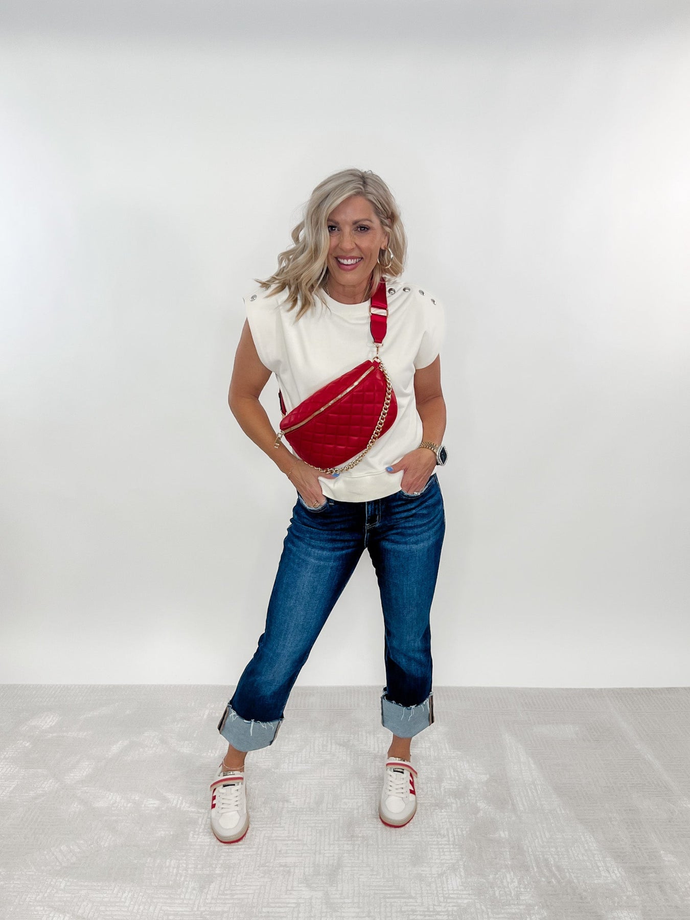 The Sylvie Belt Bag is your new go-to for polished practicality. With its luxe quilted exterior and gold-tone chain detail, this statement piece delivers the perfect mix of edge and elegance. Whether you're running errands or heading out for the night, Sylvie keeps your essentials close in style—no shoulder slipping required.