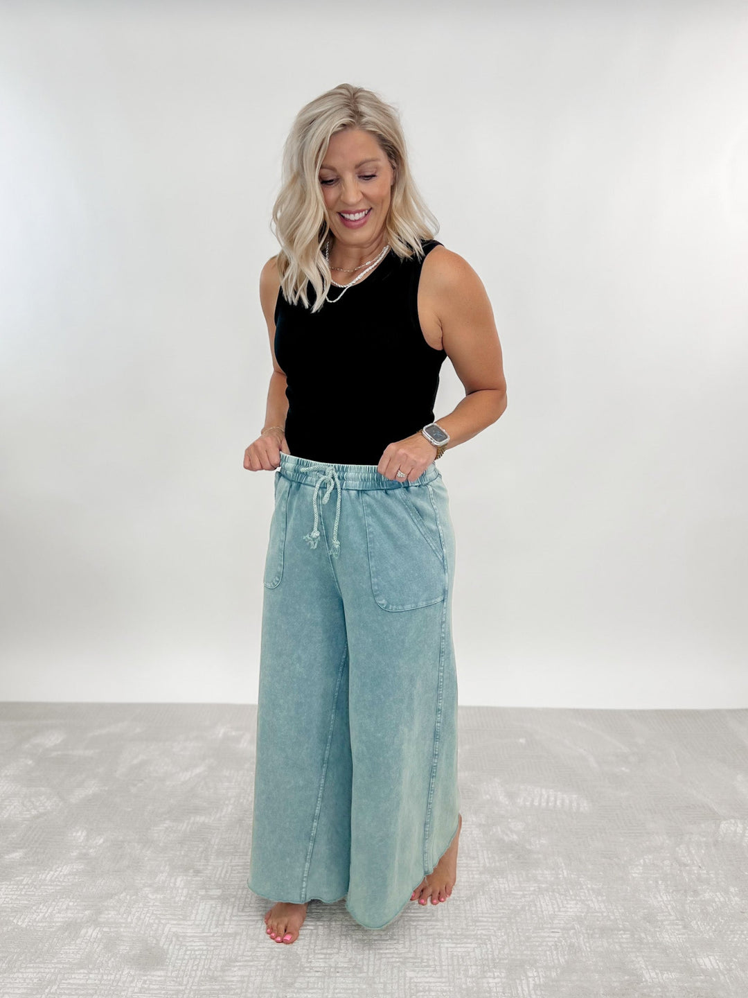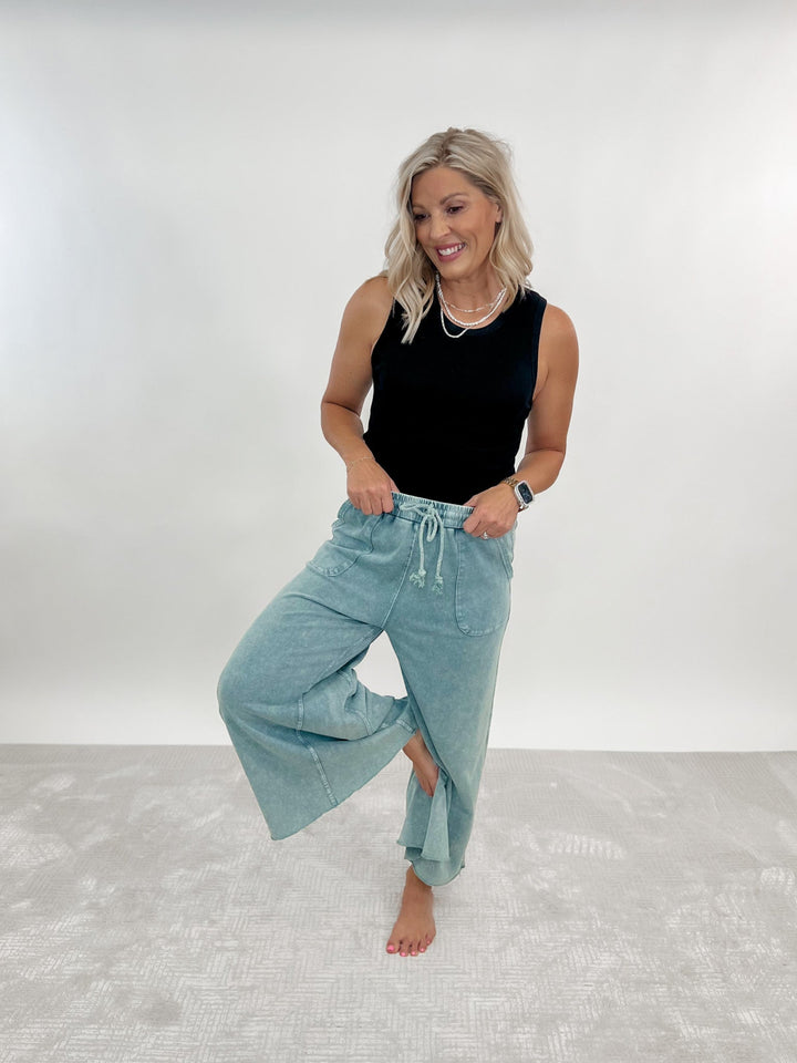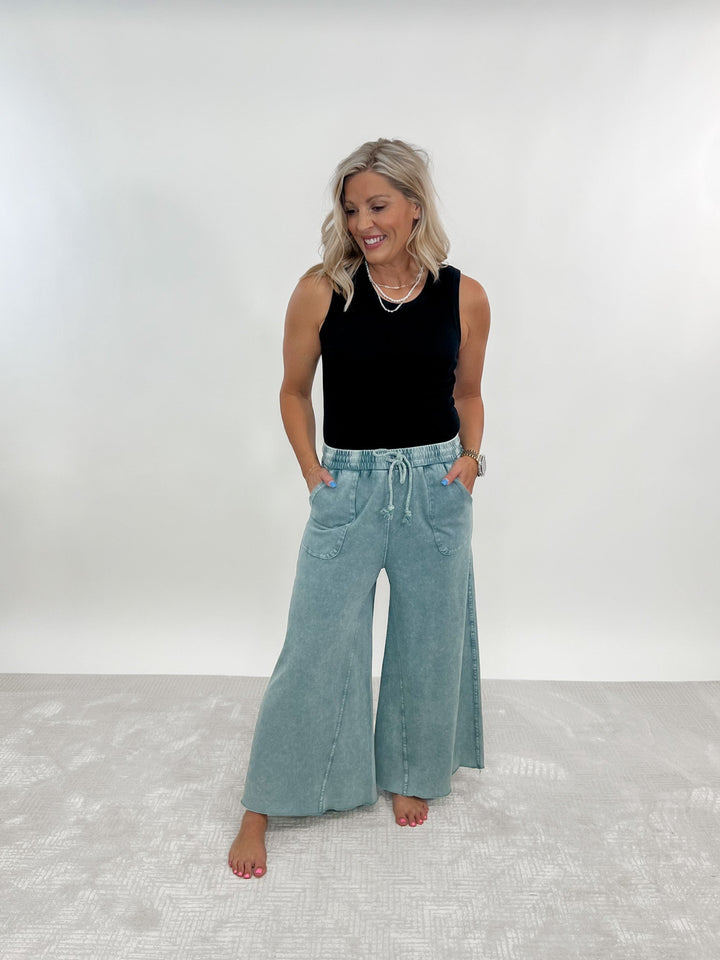 Weekend Wanderers – Washed Terry Wide Leg Pants