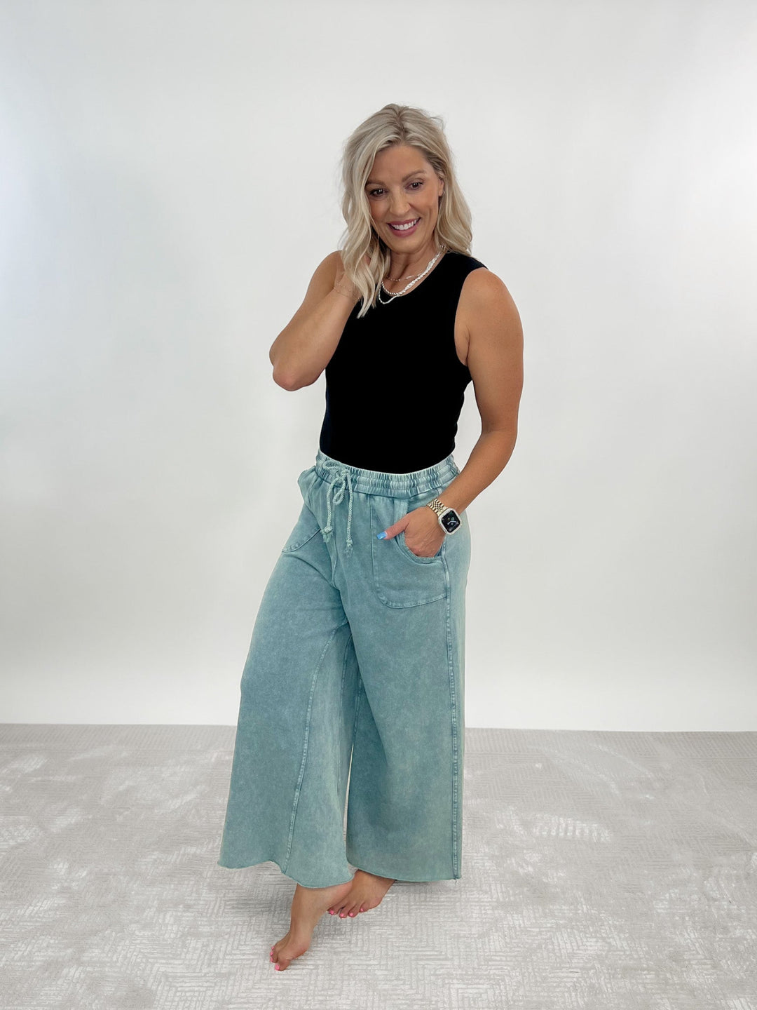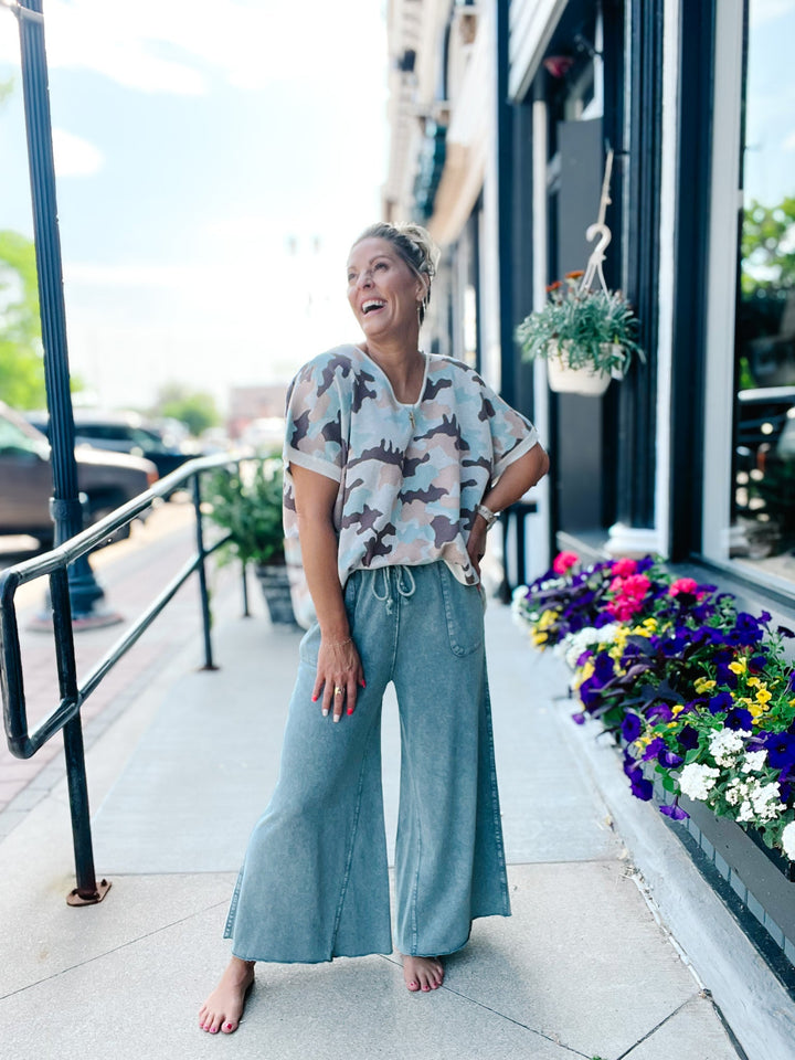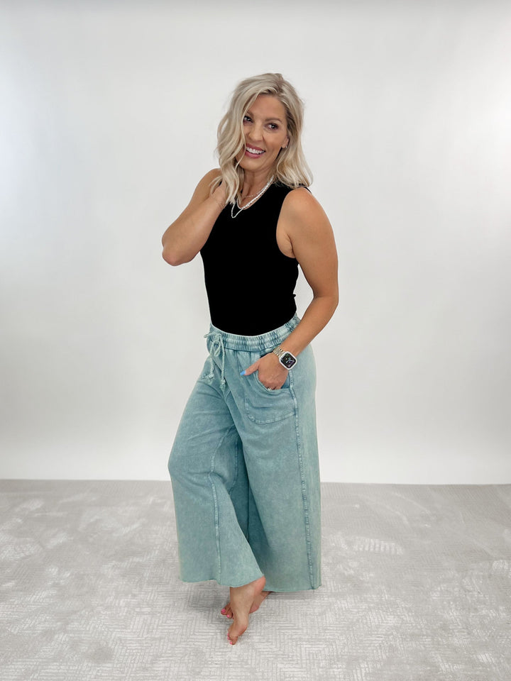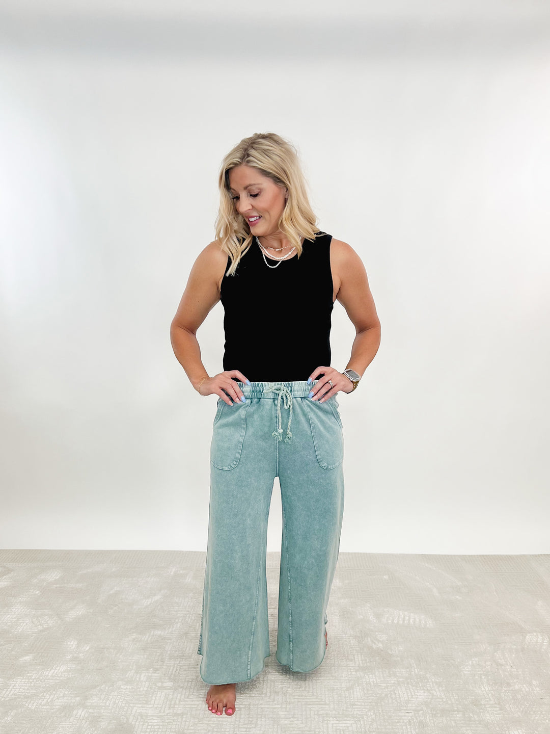 Weekend Wanderers – Washed Terry Wide Leg Pants